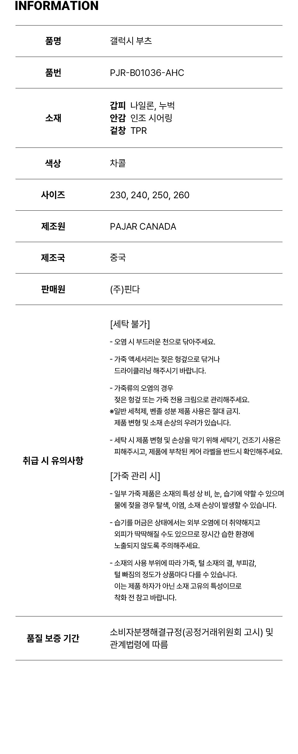 파잘 갤럭시 부츠 차콜