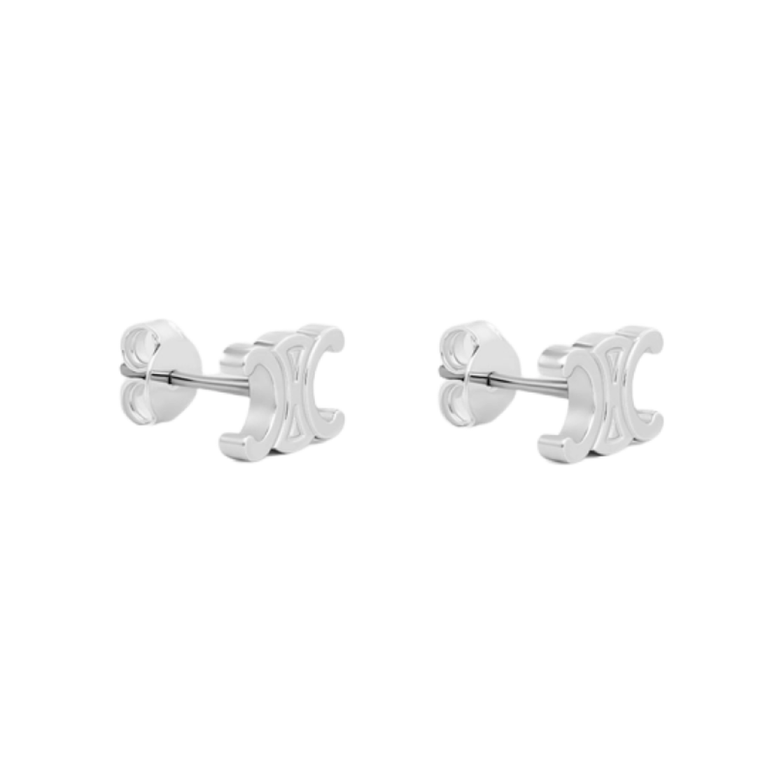 (W) Celine Triomphe Studs in Brass with Silver Finish Silver