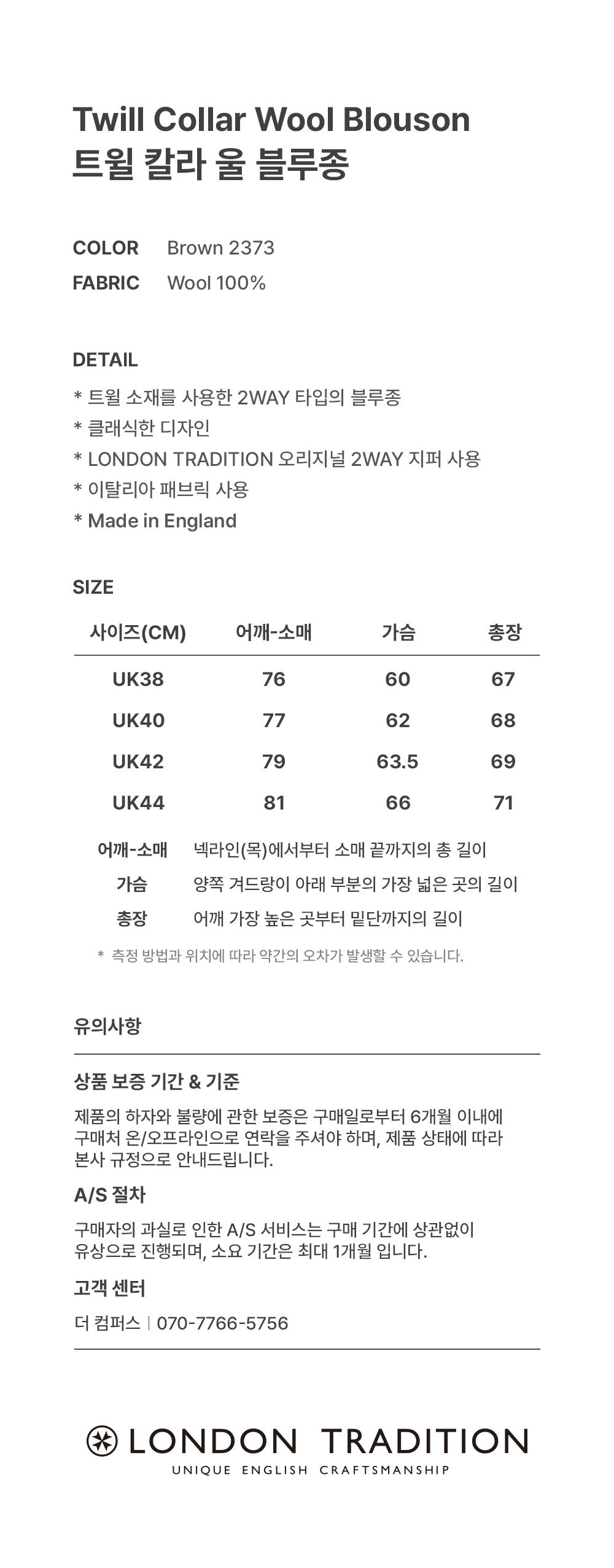런던 트레디션 트윌 칼라 울 블루종 브라운 2373