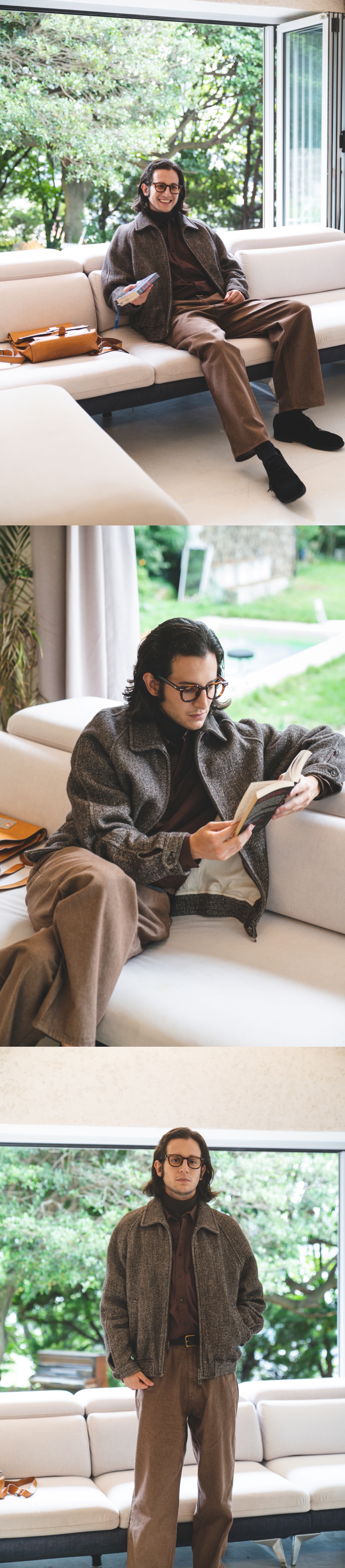London Tradition Twill Collar Wool Blouson Brown 2373