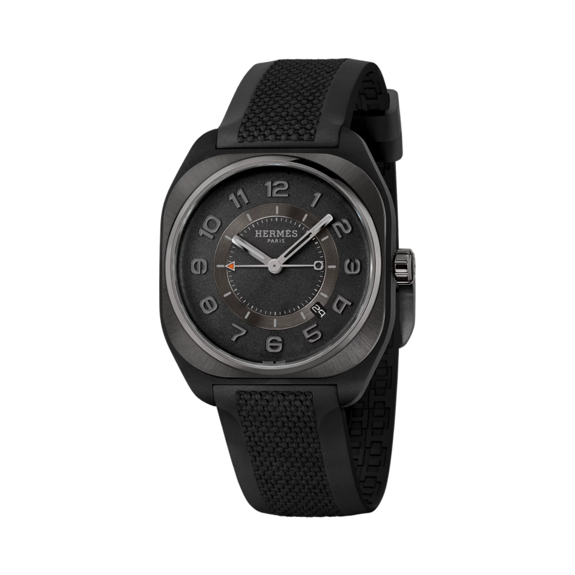 Hermes H08 Watch Extra Large Noir Rubber Strap & Gray Graphene Composite