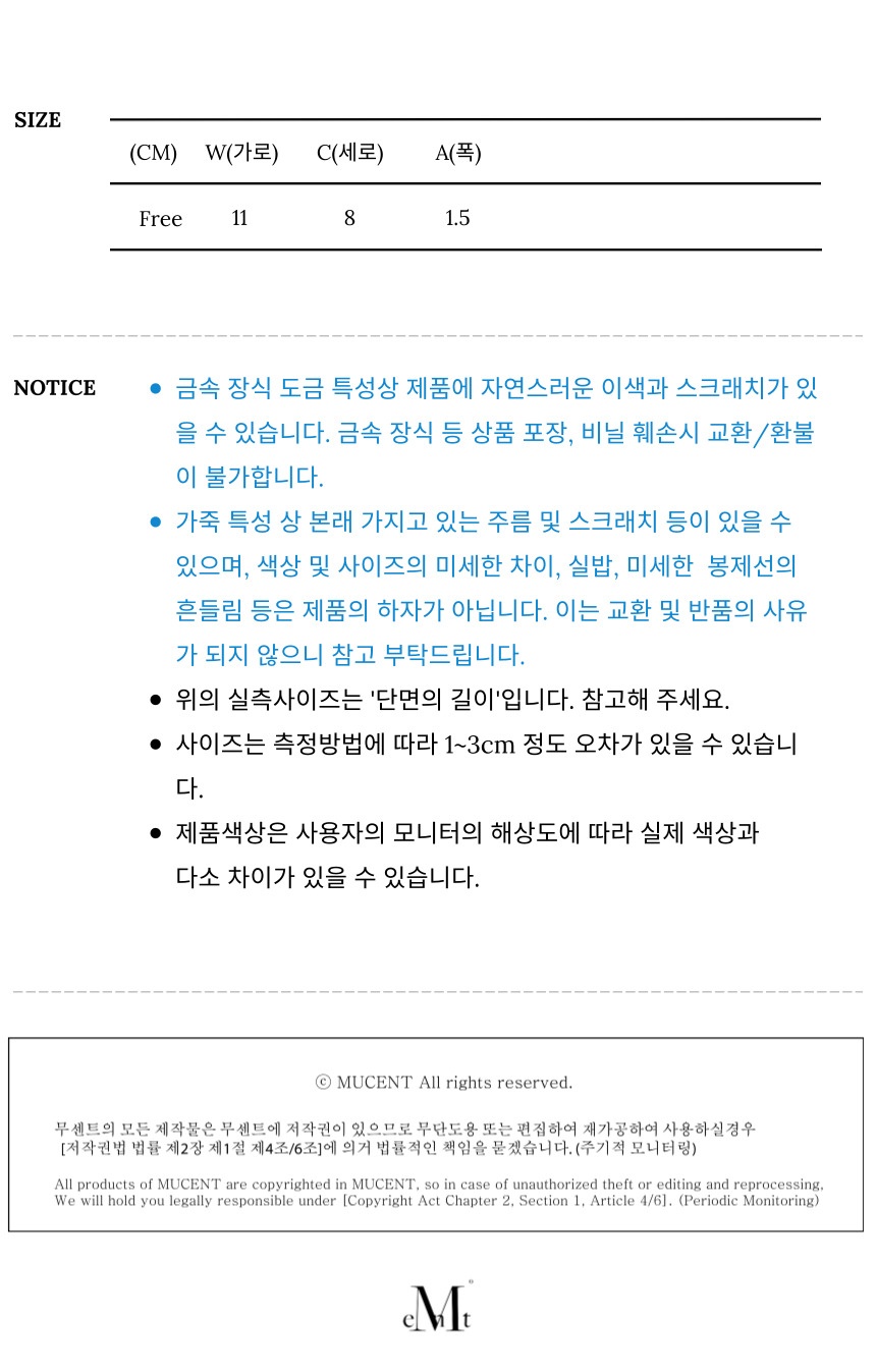 측정 방법에 따라 사이즈에 일부 오차가 있을 수 있습니다.