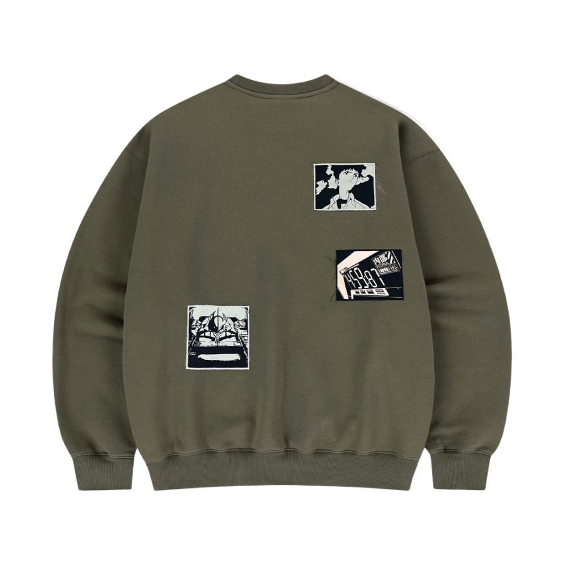 마하그리드 x 에반게리온 에바 패치워크 스웨트셔츠 카키