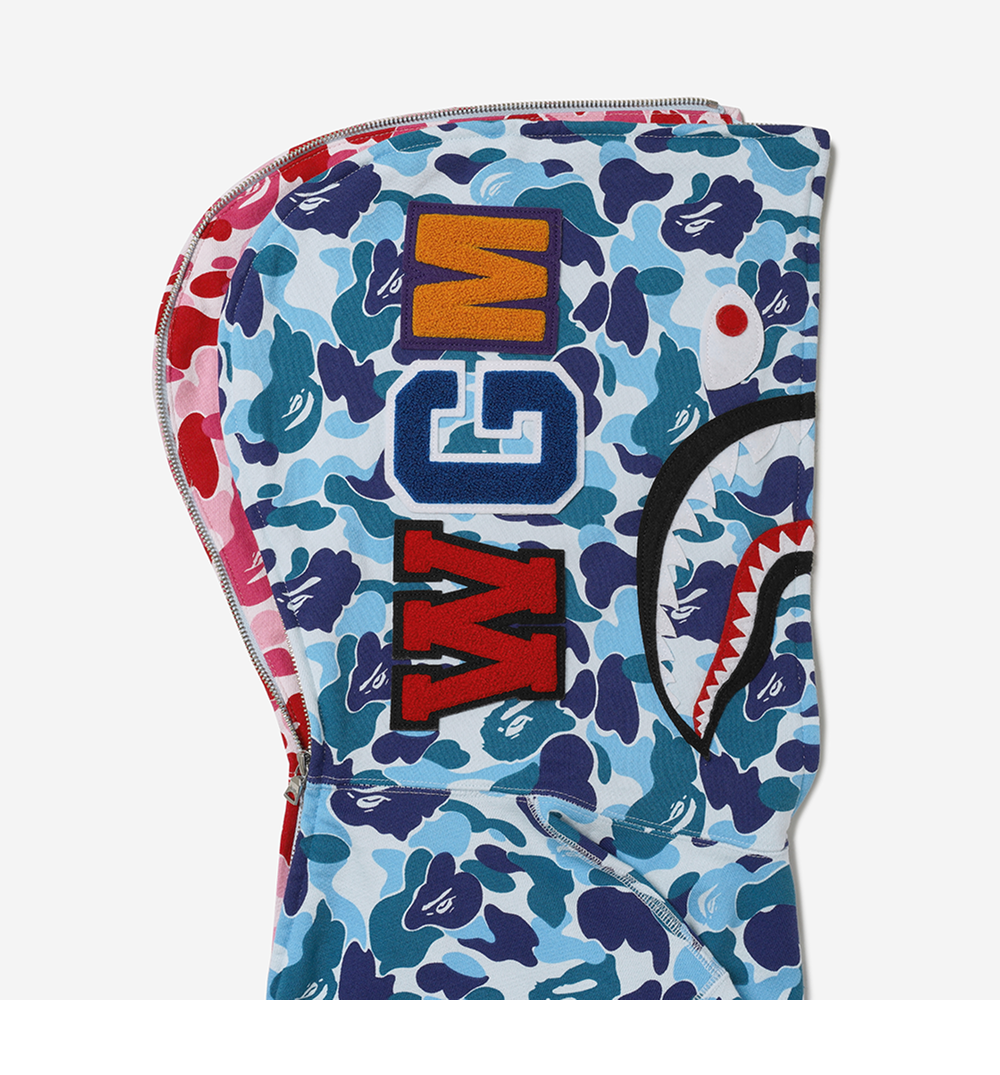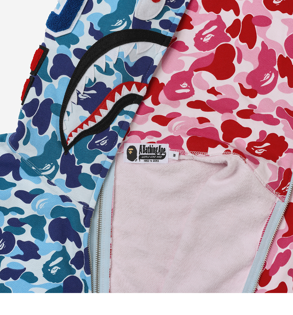 베이프 ABC카모 세퍼레이트 샤크 풀 집 후드 블루 핑크