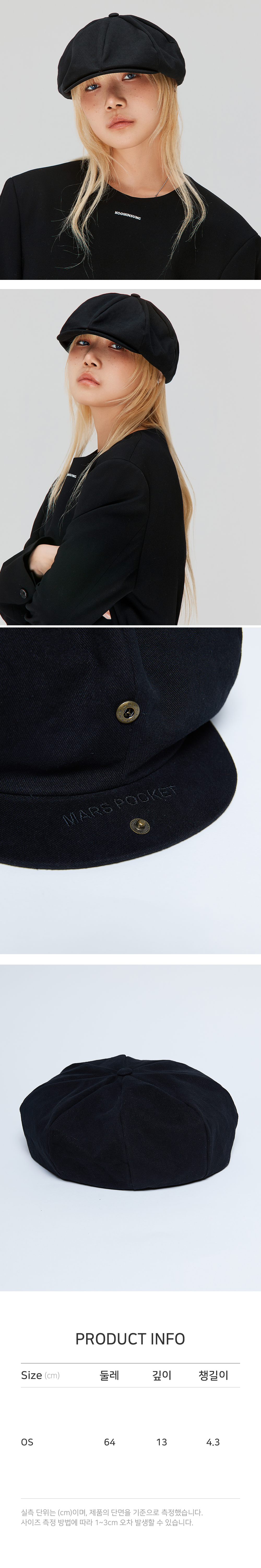 마스포켓 빅 뉴스보이 캡 블랙