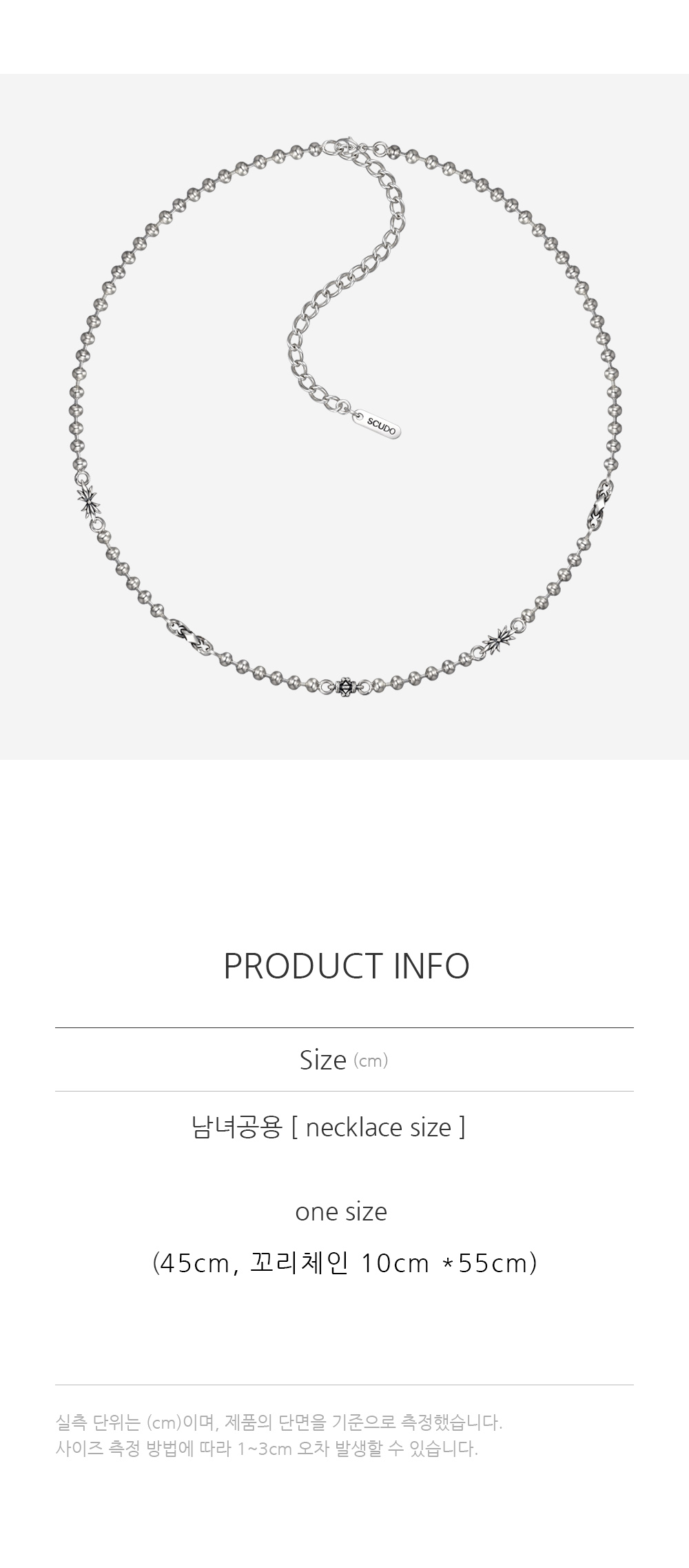 SCUDO signature line 스쿠도 시그니처링크를 엮은 넥크리스 Material - Silver925 Texture - vintage glossy One size 45cm 10cm꼬리 *55cm Measurement - ball size: 4mm - 랍스터 마감 - 링크 5piece (가든 프랑스 돌핀) 스쿠도의 주얼리는 맞춤 handcraft 주얼리로, 7~10일 제작기간이 소요됩니다. (주말 / 공휴일 제외) 추가 제품 상담이 필요하시면, 문의 부탁드립니다.