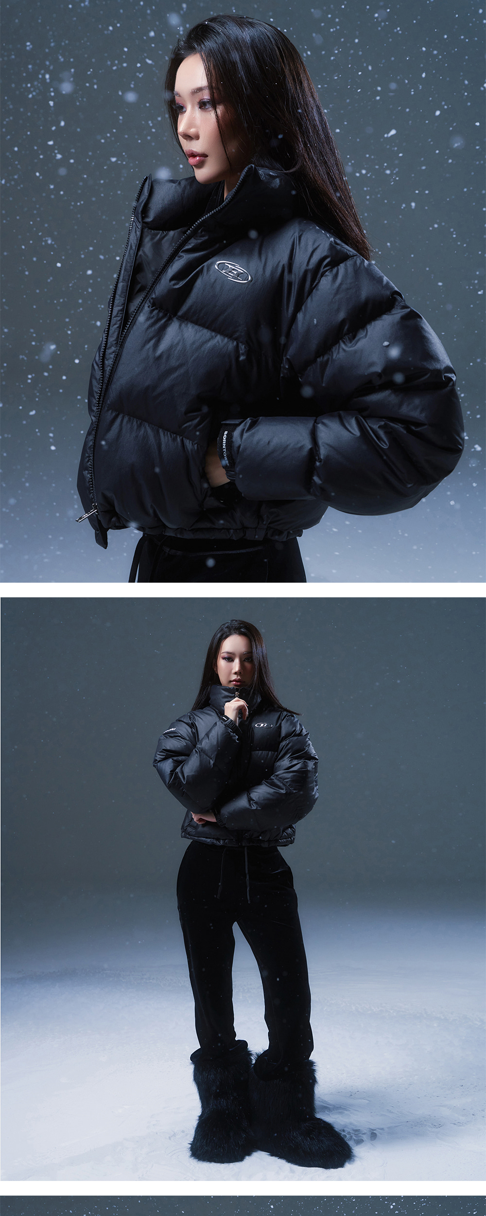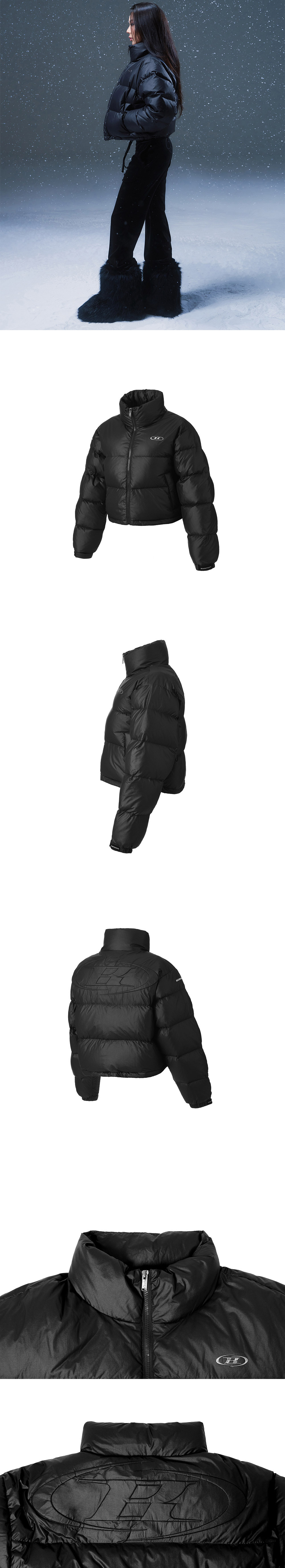 [DETAILS] * 빅 심볼 푸퍼 크롭 다운 - 발수, 방풍 기능성 경량 나일론 원단 - 600 FILL POWER, 80:20 DUCK DOWN - 오버사이즈핏 - 사이드 지퍼 포켓, 안감 포켓 - 스폰지 몰딩 로고 포인트 Material : Nylon 100% Fitting : NH 1 Size, 162cm, 46kg