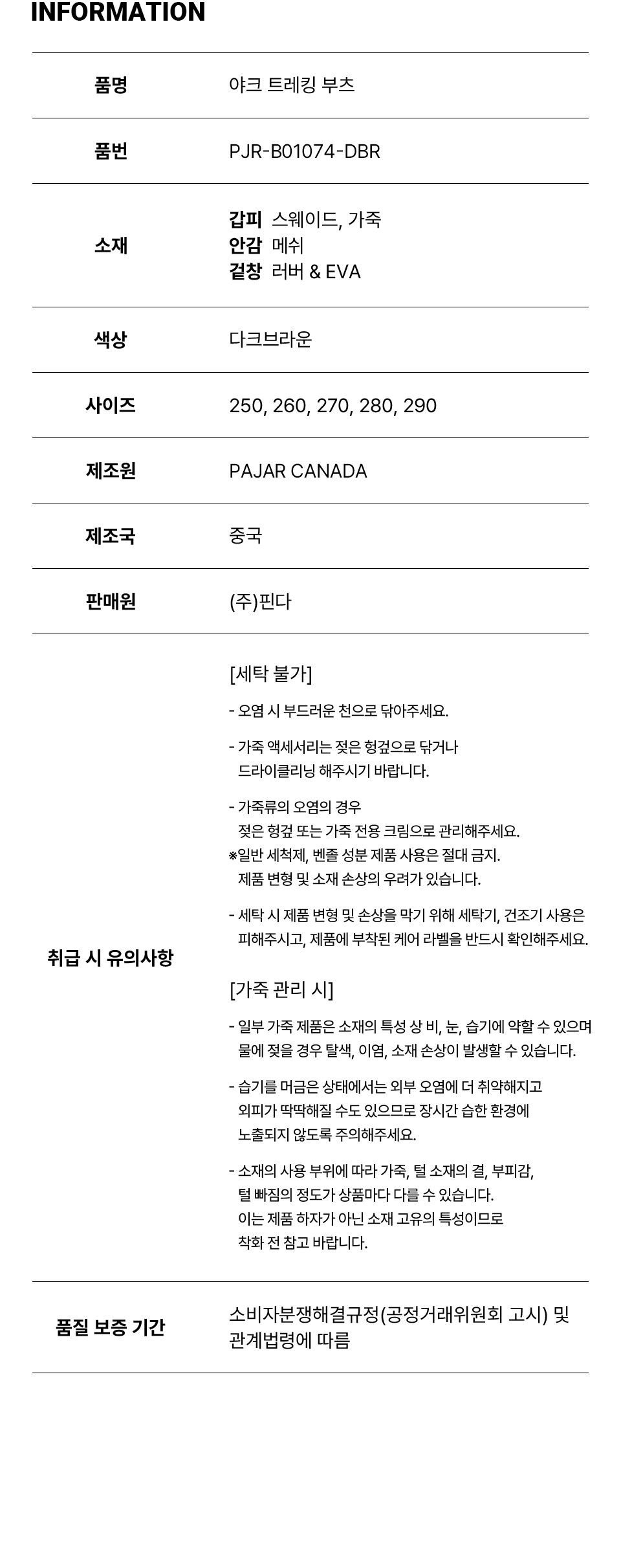 파잘 남성 야크 다크 브라운