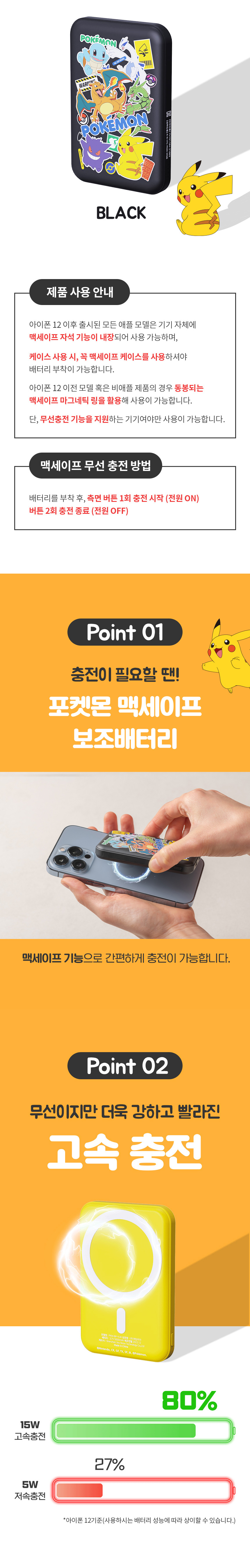 우진 스토어 포켓몬 맥세이프 보조배터리 5000mAh 블랙