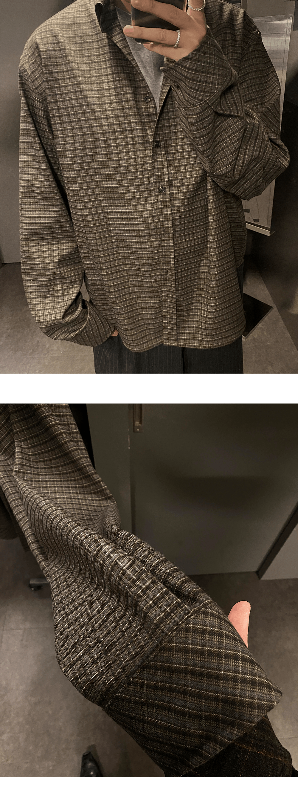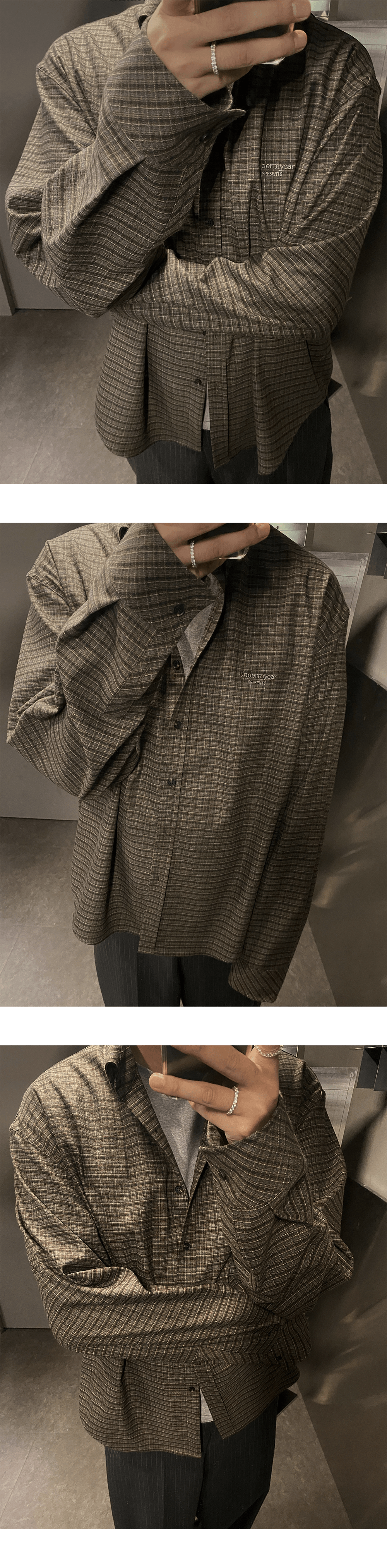 언더마이카 무.81 안티 FXXKING 로고 플레이 베이직 롱 슬리브 플란넬 셔츠 브라운