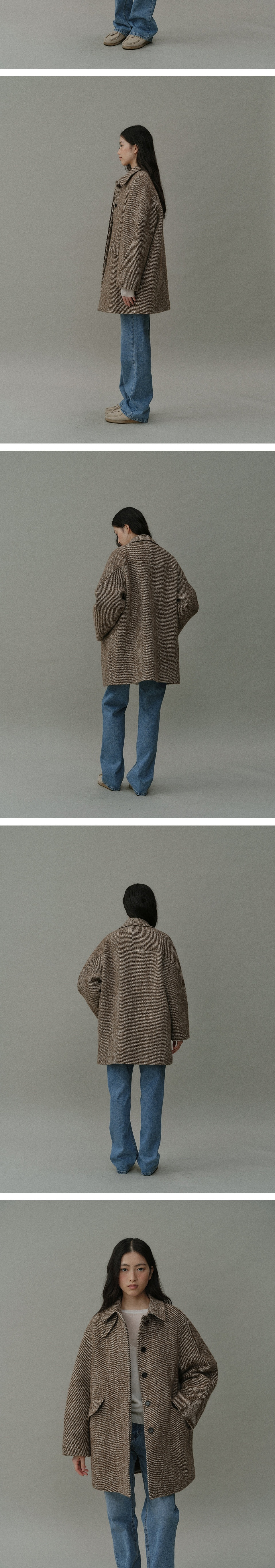 블랭크공삼 이탈리안 패브릭 패디드 오버핏 하프 코트 브라운 트윌