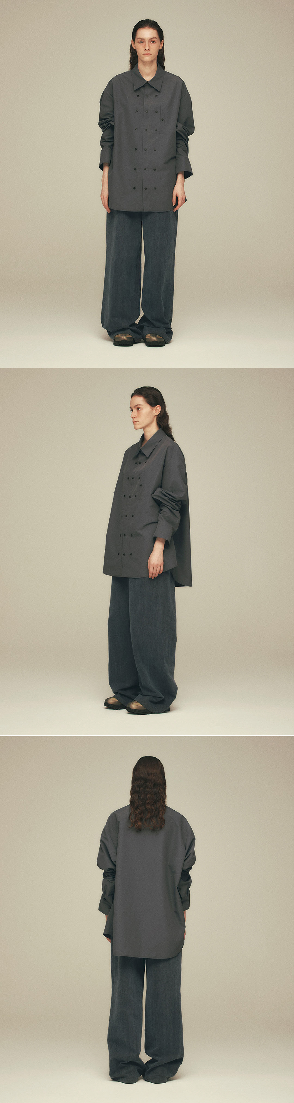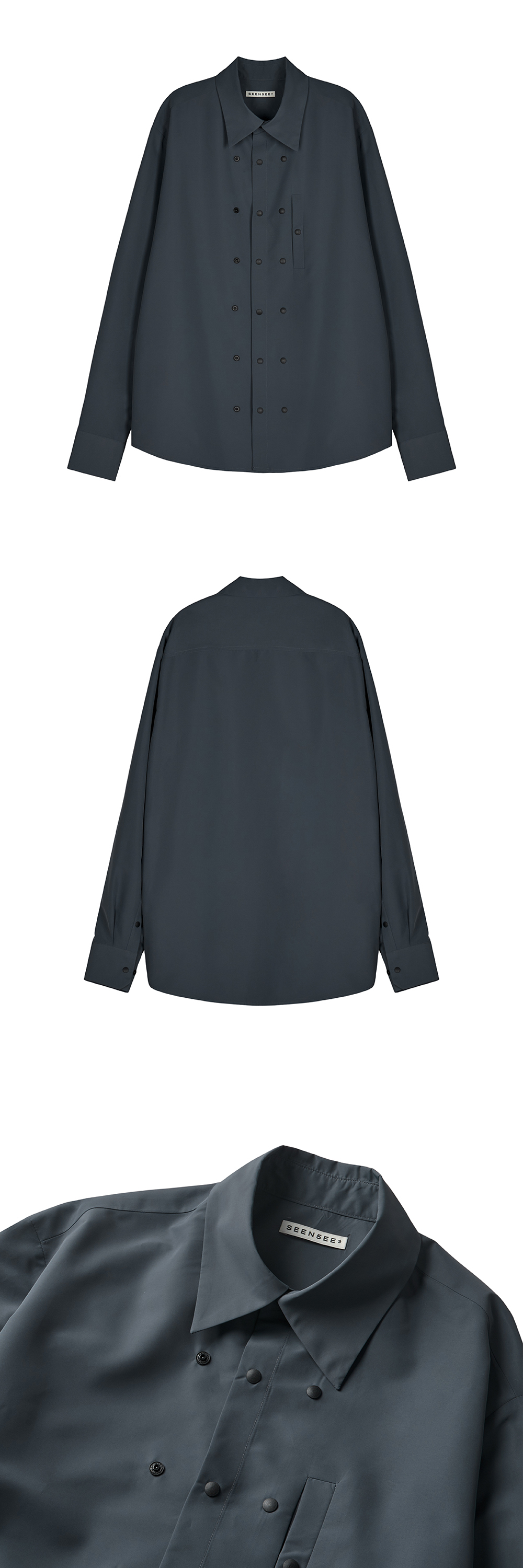 - functional fabric - Polyester 100% - 3 lines many snap for adjust size and fit - Oversized - 기능성 원단 - 폴리에스테르 - 핏과 사이즈 조절이 가능한 3줄의 스냅 디테일 - 오버사이즈 Poluester 100% Made in South Korea Washing Information Machine wash cold With like colours Do not bleach
