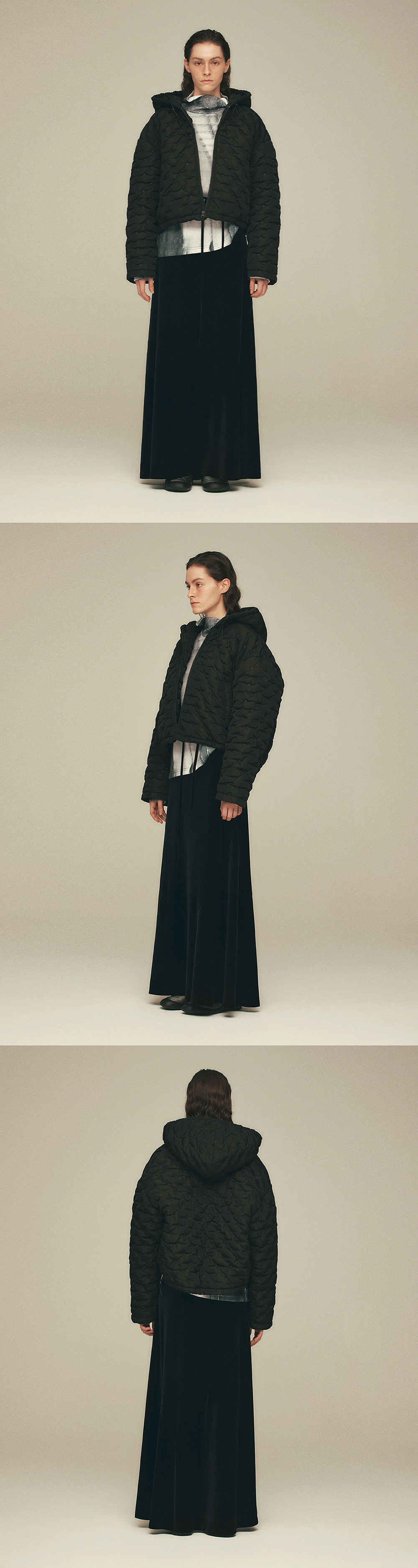 씬 소파 텍스쳐 패디드 후디 자켓 크롭