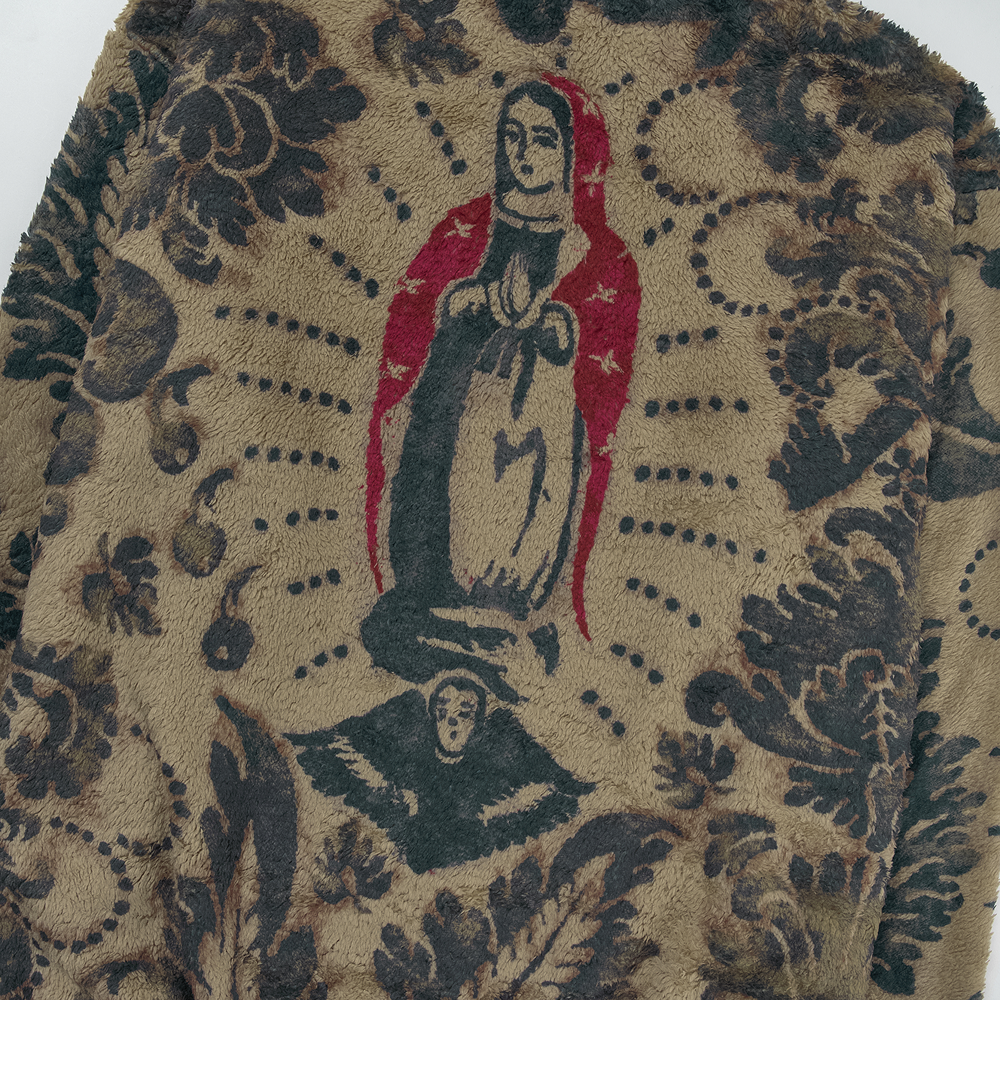 캐피탈 다마스크 패턴 플리스 스냅 티셔츠 버진 마리아 베이지