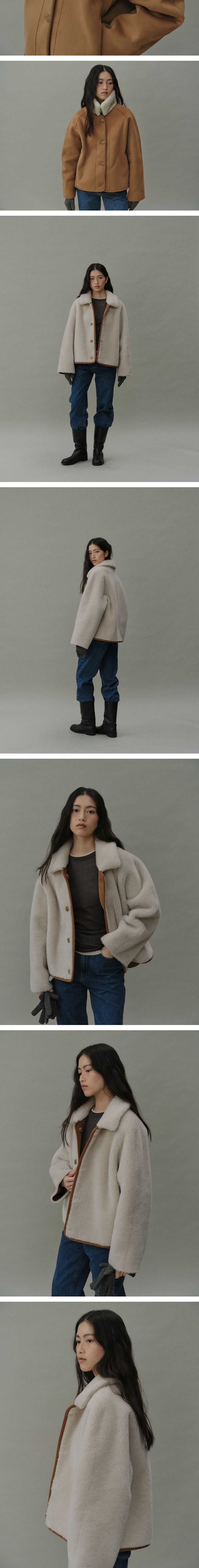 Blank03 Wool Shearing Reversible Short Coat Cream