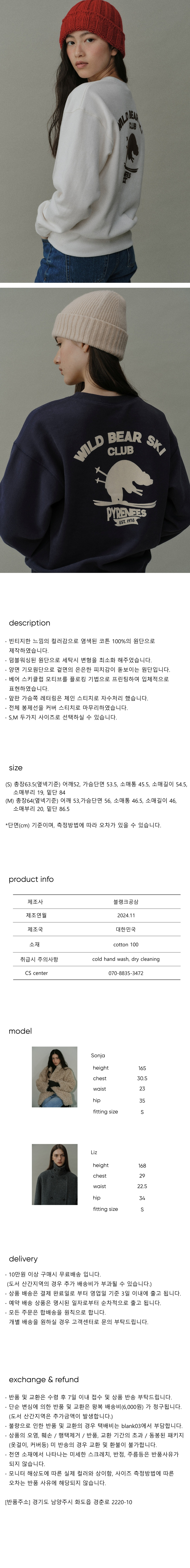 블랭크공삼 백 프린트 피치스킨 스웻셔츠 빈티지 그레이
