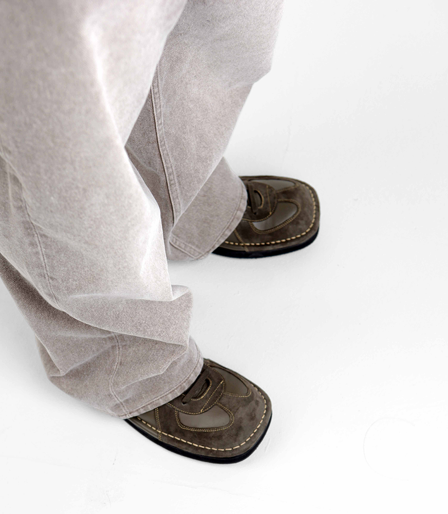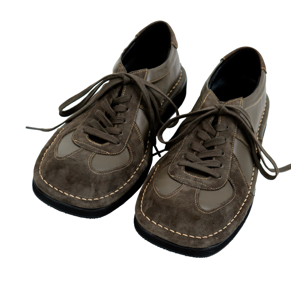 독일군 슈즈. 아웃스티치 공법으로 와이드한 실루엣 연출. EVA 창 사용으로 가볍고 편안한 착화감. *소재 - Body : soft sheep suede & leather - Bottom : EVA *사이즈 - wide-02 fit - 와이드 팬츠에 어울리는 빅 볼륨 (굽높이 3.5cm) - 사이즈 추천▼ (확인 필수!!!) 평소 신으시는 신발의 가장 작은 사이즈 대비 발볼/발등 넓고 높으시면 -5사이즈 발볼/발등 좁고 낮으시면 -10사이즈 다운 (다운사이징하셔도 보통 작지 않습니다) *주문 제작 상품으로, 제작 기간은 결제 후 영업일 기준 약 12일 소요됩니다. *제품상자는 자사의 제품임으로 훼손시 환불이 불가합니다.