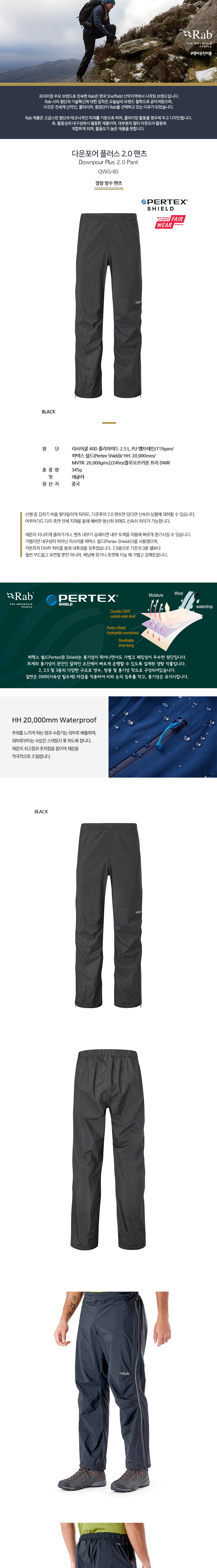 랩 다운포어 플러스 2.0 팬츠 블랙