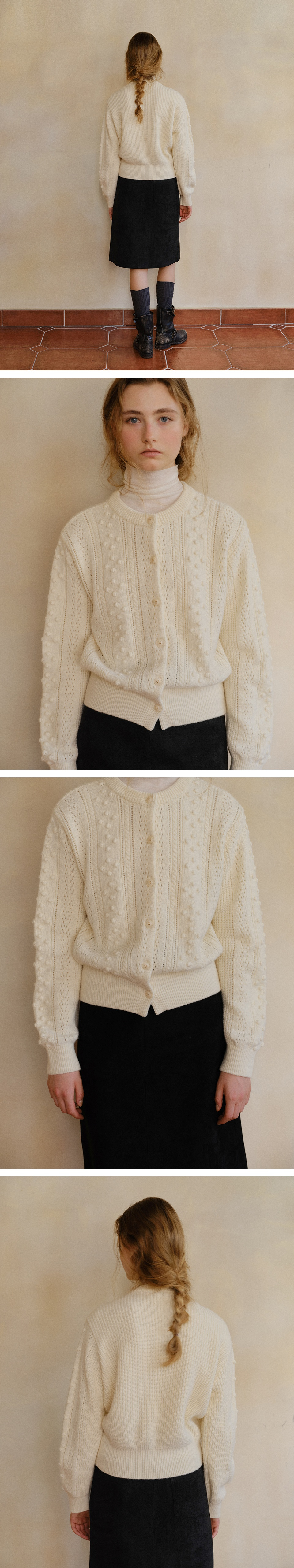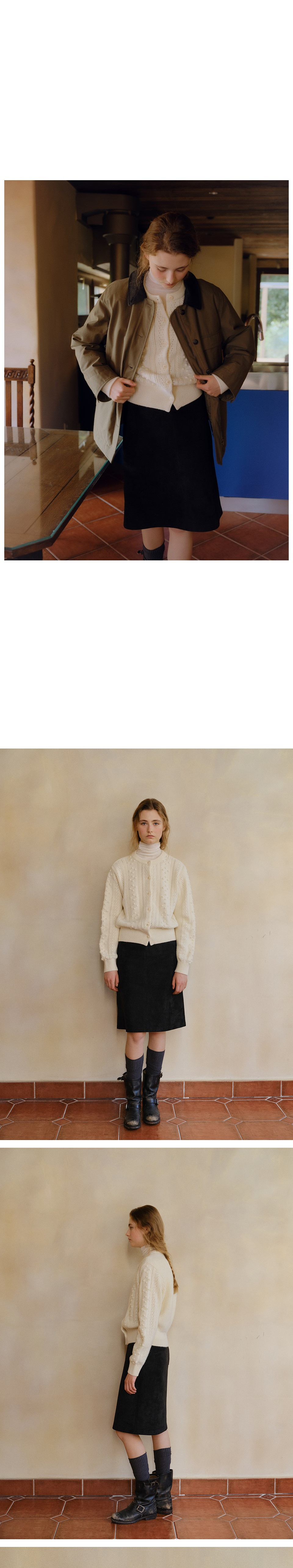 블랭크공삼 빈티지 케이블 니트 가디건 크림