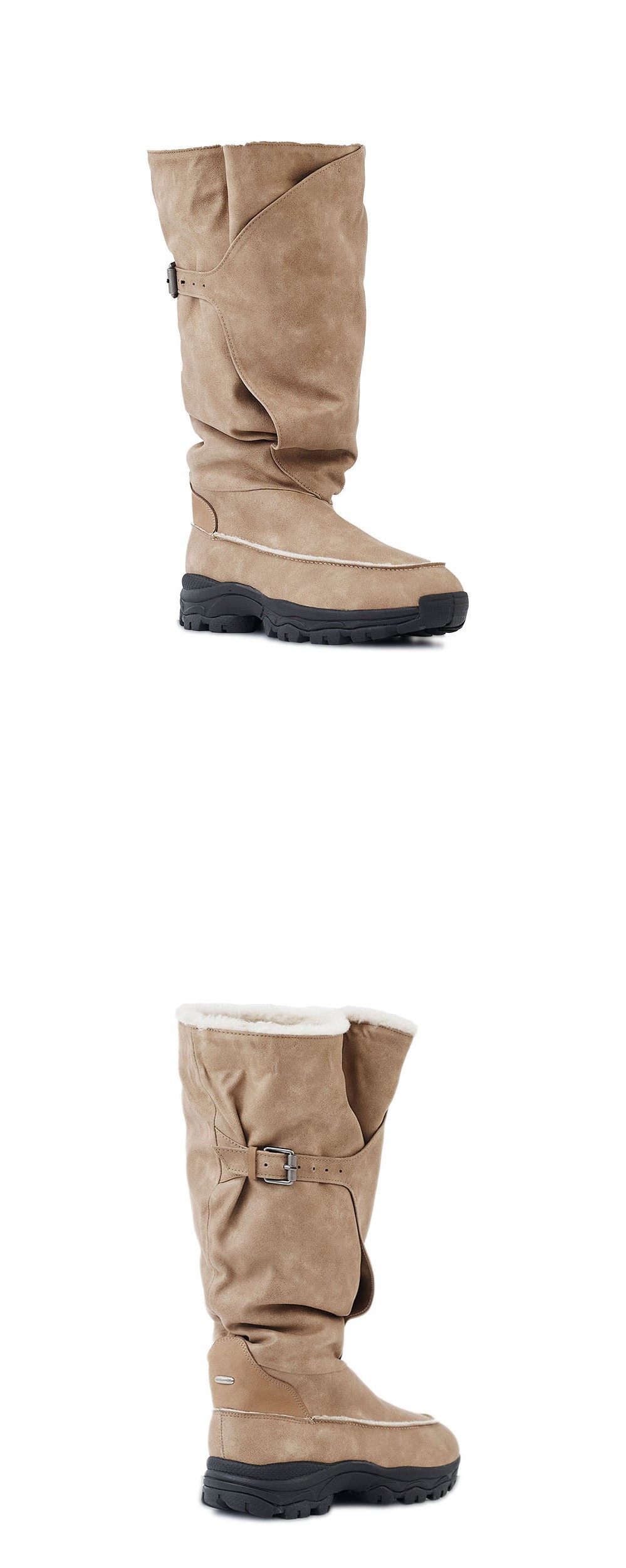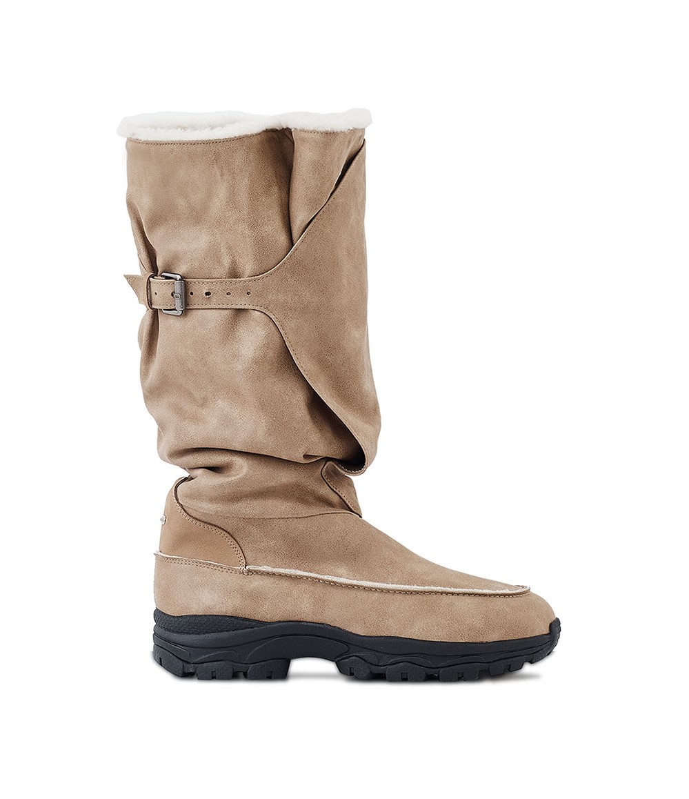 NegativeThree Belted Slouchy Shearling Boots Washed Beige