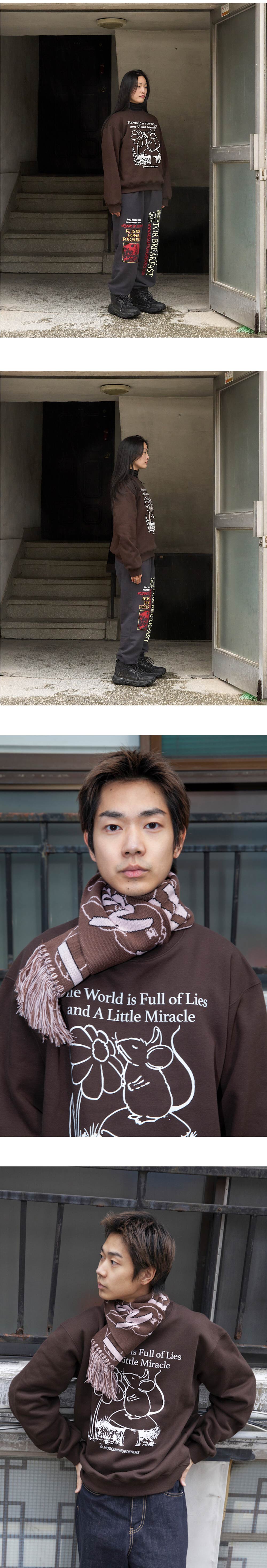 170cm(5’6”) / 59kg(130lb) WEARS SIZE 1 178cm(5’8”) / 55kg(121lb) WEARS SIZE 2 - Cotton 80% Polyester 20% 기모원단으로 도톰하고 소프트한 텍스처 - 목 늘어남을 방지하기 위한 넥라인 해리처리 - 갈라삼봉 봉제법으로 내구성이 우수하며 완성도 높은 실루엣 - 넓고 두꺼운 밴딩을 이용한 소매 및 끝단 시보리 처리 - 덤블워싱, 텐타 가공을 거쳐 오랜시간 착용 및 세탁시에도 옷의 변형을 최소화 - 벗겨지거나 바래지 않는 선명한 프린팅 Mosquito murderers의 모든 의류는 한땀 한땀 사람의 손으로 탄생됩니다. 세탁시 케어라벨을 확인해 주시고, 프린팅의 손상을 최소화 하기 위해 옷을 뒤집어 세탁하는 것을 권장합니다.
