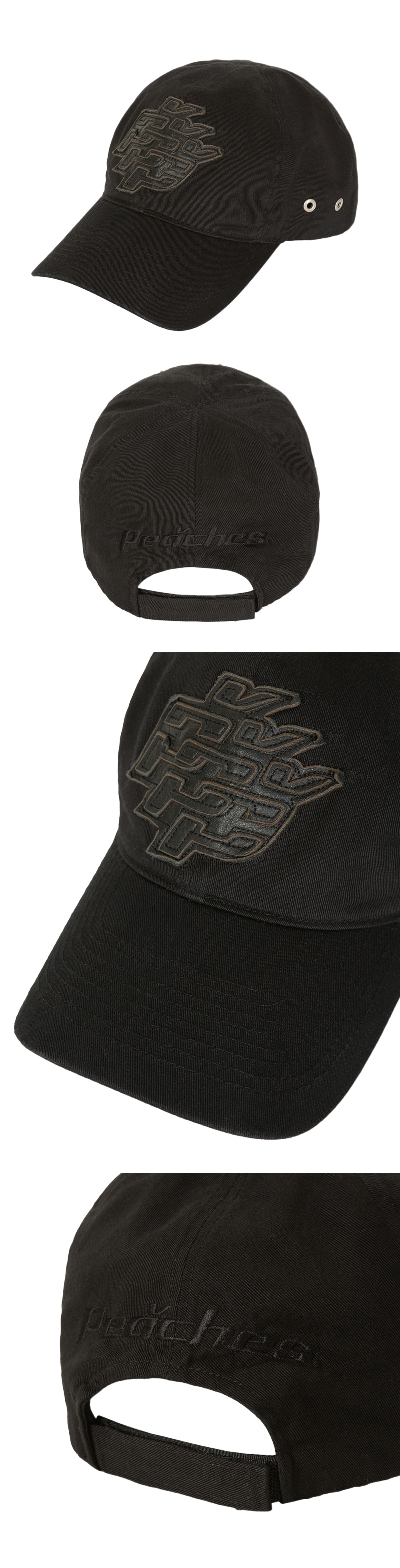 피치스 레더 아플리케 캡 블랙