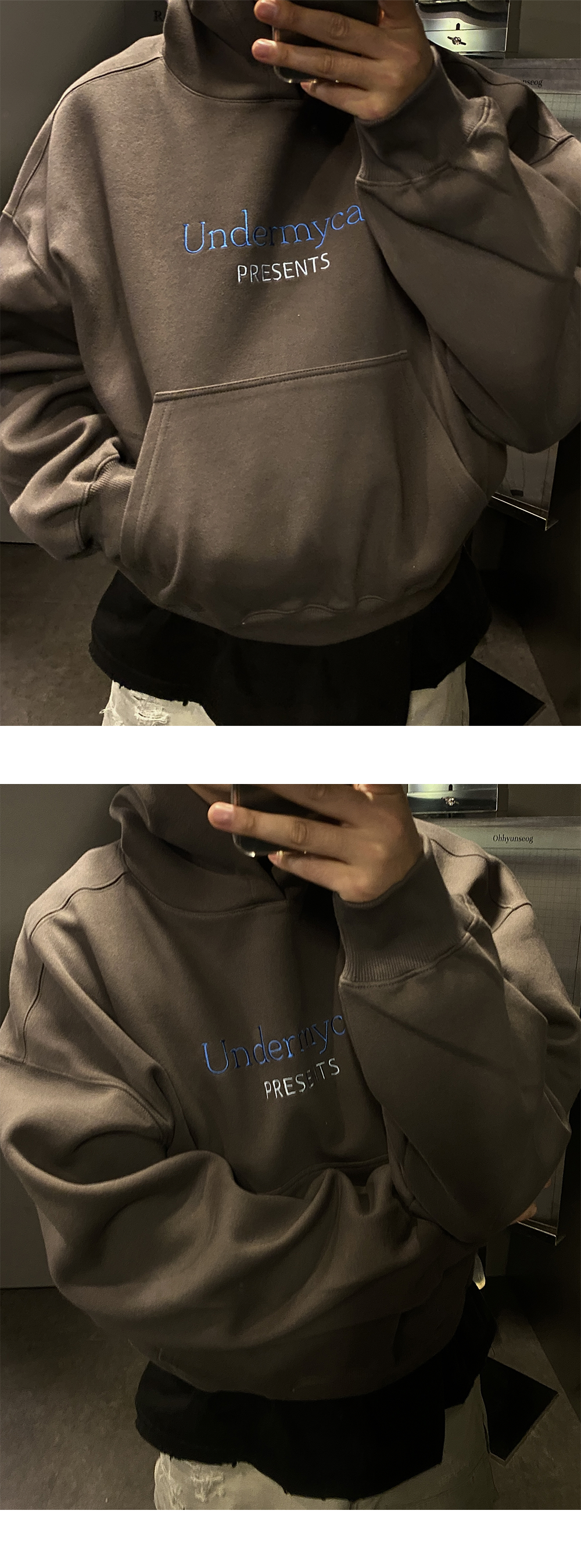 언더마이카 피오씨 투 톤 클래식 로고 본디드 스웻 후디 브라운 BL SB