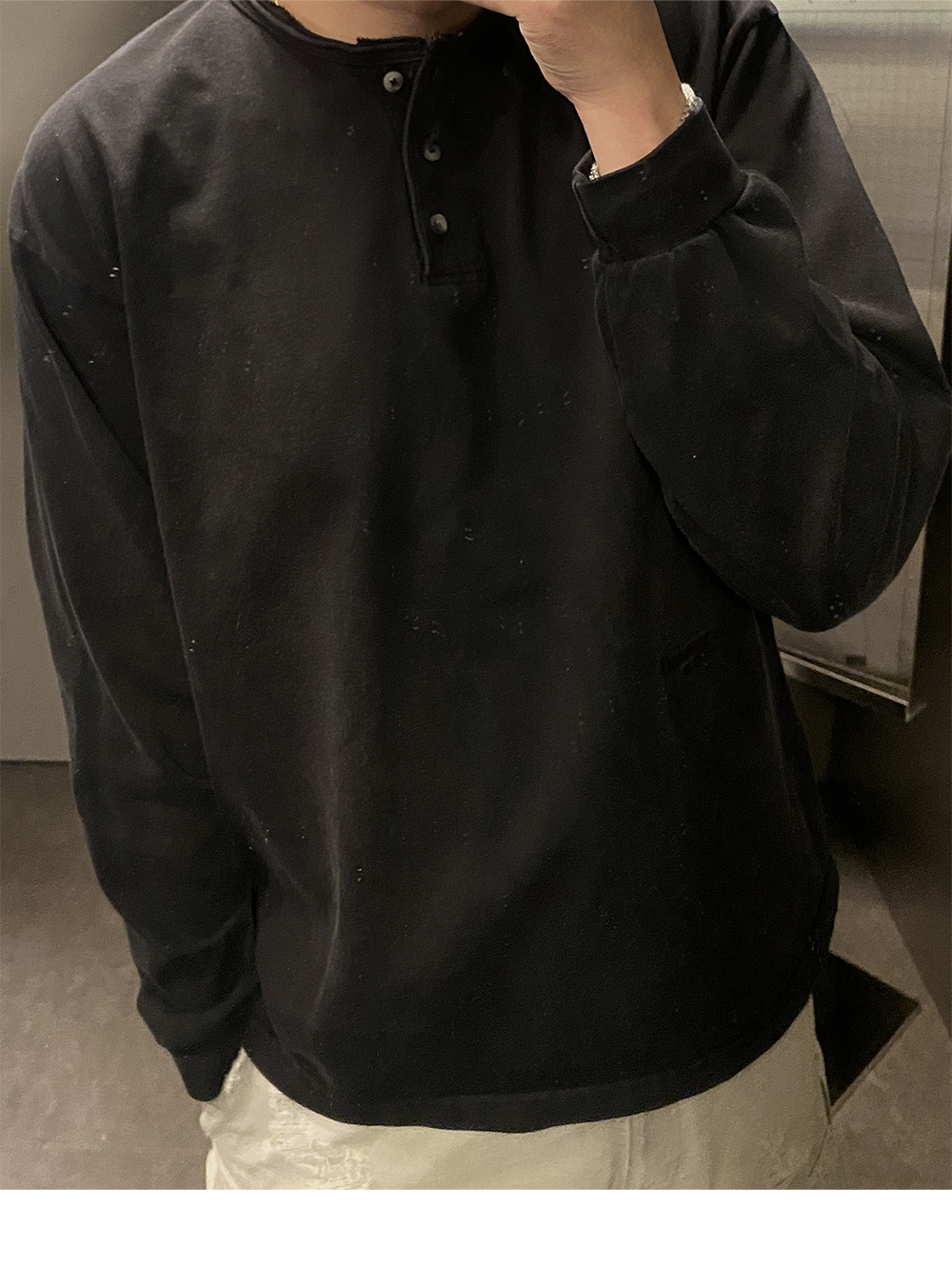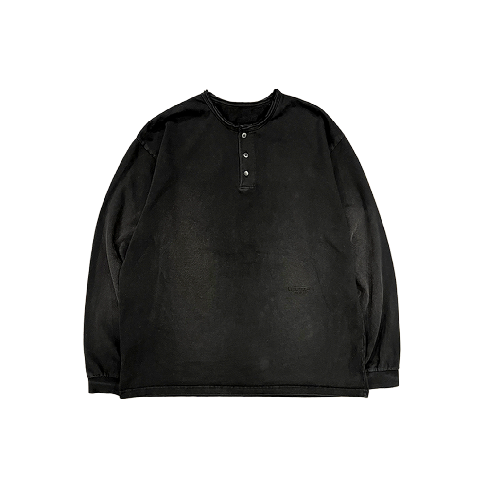 Undermycar Mu.89 Anti Fxxking Logo Play Brush Washed Henley Shirts Black