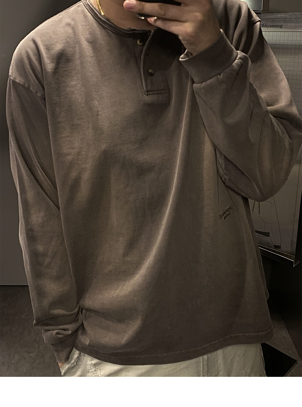 언더마이카 무.89 안티 Fxxking 로고 플레이 브러시 워시드 헨리넥 셔츠 블랙