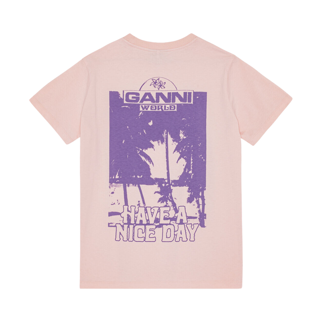 (W) Ganni Basic Jersey Palm Trees Relaxed T-Shirt Lotus