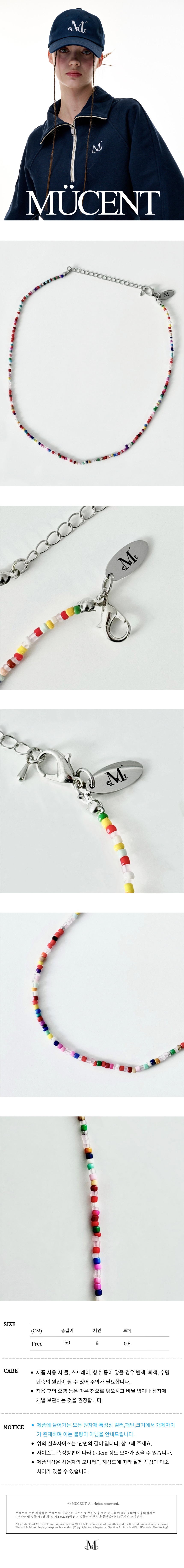 ┃Detail • 무센트 시그니처 타원 펜던트 포인트 • 광택이 있는 컬러 아크릴 비즈로 제작 • 데일리로 착용 가능한 아이템 • 블랙, 그린, 블루, 멀티 4가지 색상 • 단독 또는 레이어드하여 착용하기 좋은 아이템 ┃Material : Acrylic 100% ┃Care : Dry cleaning - 무센트는 말기의 행성인 이 지구에서 지속 가능한 옷들을 고민합니다. 우리는 신념을 소비하는 미닝아웃을 지지합니다.