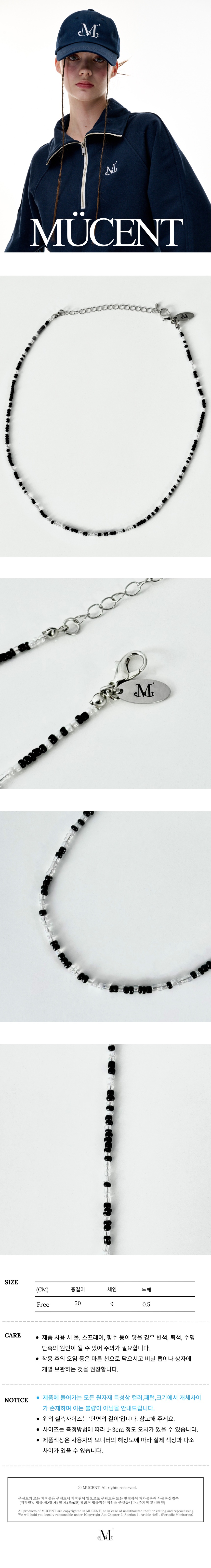 ┃Detail • 무센트 시그니처 타원 펜던트 포인트 • 광택이 있는 컬러 아크릴 비즈로 제작 • 데일리로 착용 가능한 아이템 • 블랙, 그린, 블루, 멀티 4가지 색상 • 단독 또는 레이어드하여 착용하기 좋은 아이템 ┃Material : Acrylic 100% ┃Care : Dry cleaning - 무센트는 말기의 행성인 이 지구에서 지속 가능한 옷들을 고민합니다. 우리는 신념을 소비하는 미닝아웃을 지지합니다.