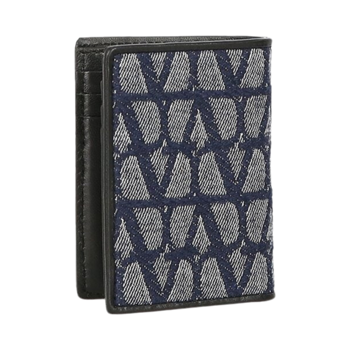 발렌티노 트왈 아이코노그래피 레더 디테일 데님 이펙트 자카드 패브릭 월렛 데님 블랙