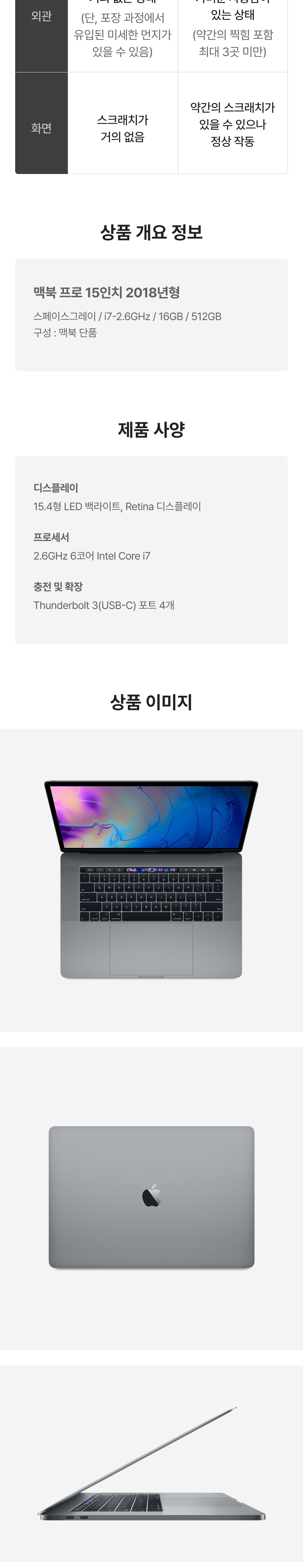 [S등급] 리퍼비시 2018 맥북 프로 15 i7-2.6GHz 512기가 SSD 16기가 램 스페이스그레이