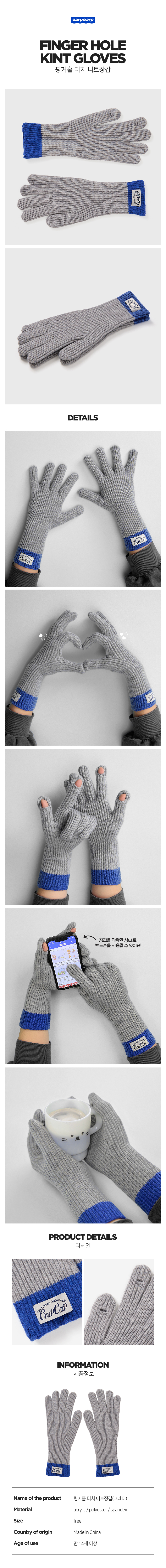 어프어프 컬러블록 니트 핑거홀 글러브 그레이