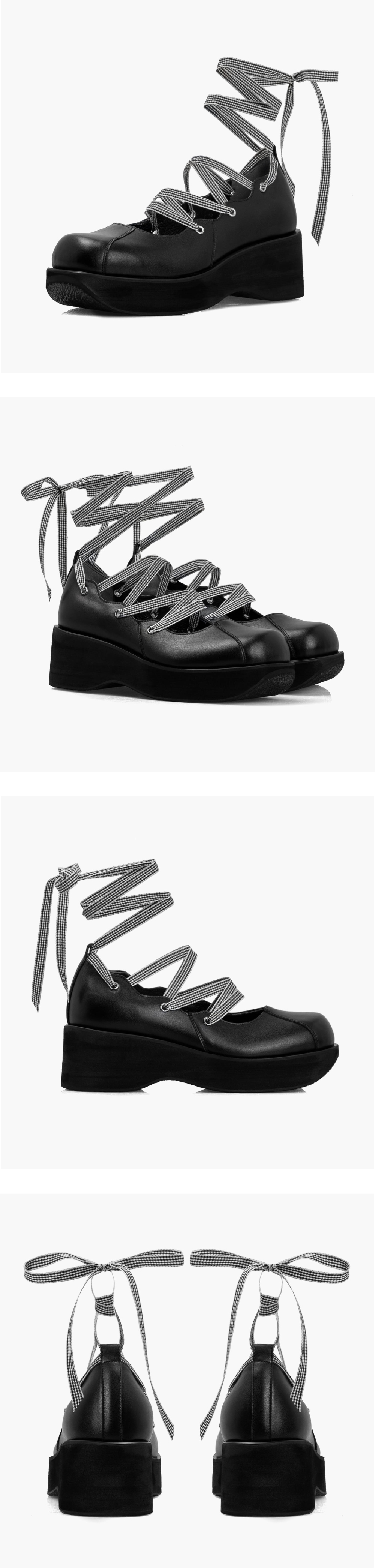 *해당 제품은 주문제작 상품이며, 제작기간은 평균 10일가량 소요됩니다.* 엘라 블랙은 부드러운 소가죽으로 제작되어 편안한 착화감을 제공합니다. 독특한 스트랩 디자인과 절개 디테일, 옆면의 물결 디테일이 귀여운 매력을 더해줍니다. 내부에는 레이스 러프넥 패치가 부착되어 세심한 디테일을 느낄 수 있으며, 가벼운 통굽으로 안정감 있는 착화감을 선사합니다. Material : Cow leather 100%