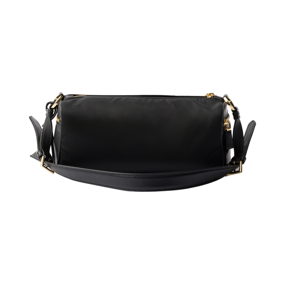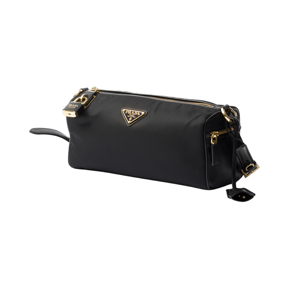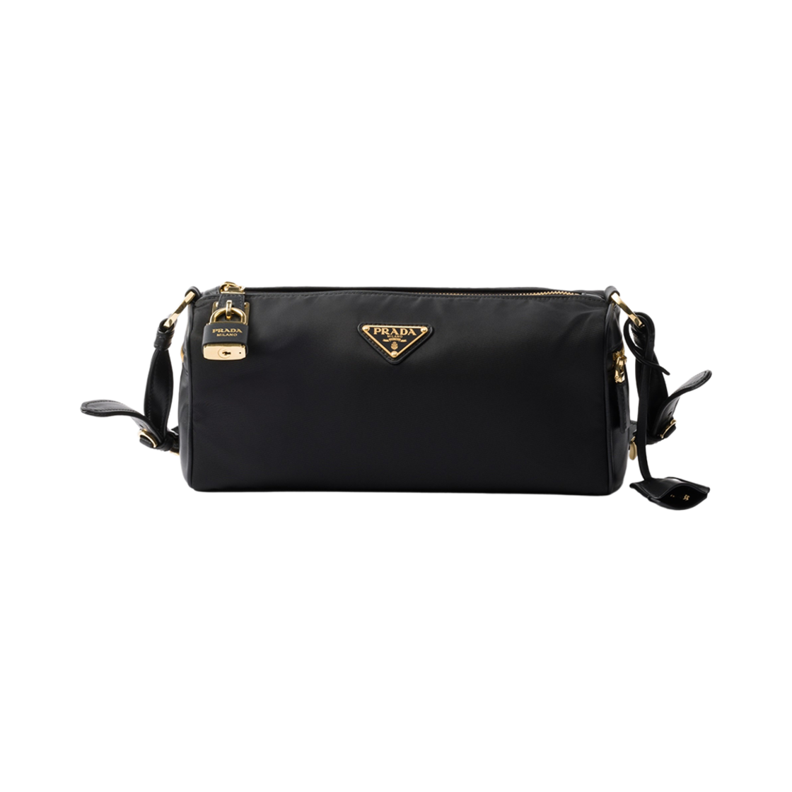 Prada Medium Re-Nylon and Leather Shoulder Bag with Padlock Black