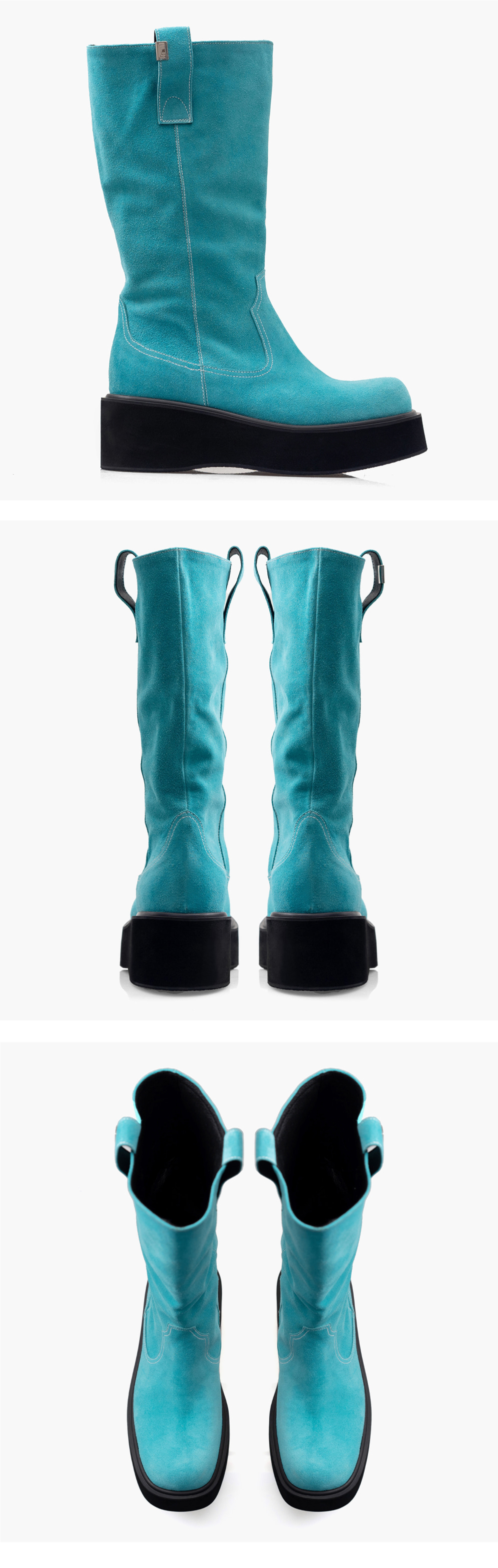 90~00년대를 풍미했던 다양한 스타일을 접목하여 디자인 했습니다. 시중에 나와있는 웨스턴 부츠의 특징은 뾰족한 앞 코입니다. 애쉬부츠는 이러한 특징을 타파하여 러프넥의 둥근 앞코라인을 넣어 기존에 없던 새로운 느낌의 웨스턴 부츠를 만들었습니다. 둥근 앞코와 러프넥 시그니처인 청키솔에 집중하고 웨스턴 부츠 특유의 화려한 패턴을 간소화 하여, 어떤 스타일에도 매치업이 가능합니다. [MATERIAL] Cow Leather [OUTSOLE] EVA [HEEL] 5.5cm