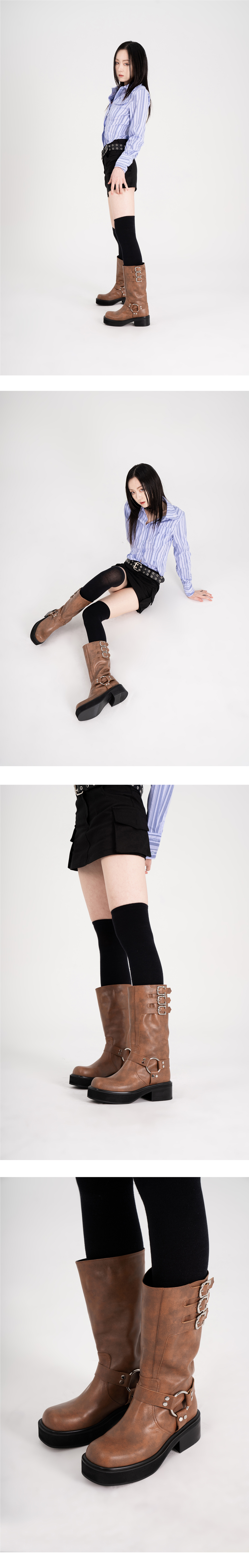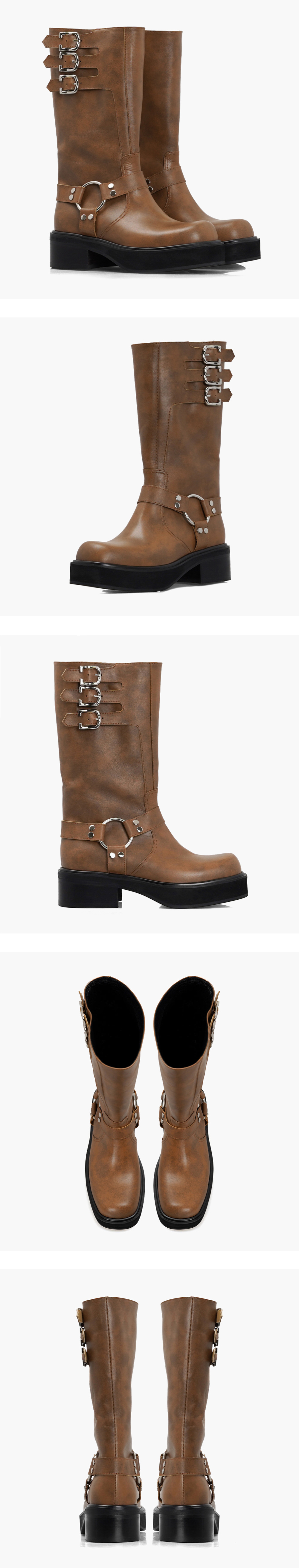 바이커 부츠는 오토바이 라이딩을 위해 설계된 독특한 형식의 부츠입니다. 모터에 신발끈이 들어가는 것을 방지하기 위해 하네스로만 디테일이 이루어져있습니다. 러프넥의 세이디는 큼직한 부츠 통에 부드러운 소가죽을 더하여 신으면 신을수록 자연스럽게 주름지며 자신만의 부츠 핏이 완성됩니다. 옆면에 두개의 절개를 넣어 단순하지만 다양한 패턴을 만들었으며 세개의 연속된 버클이 일반적인 바이커 부츠와는 다른 재미를 줍니다. [MATERIAL] Cow Leather [OUTSOLE] EVA [HEEL] 5cm