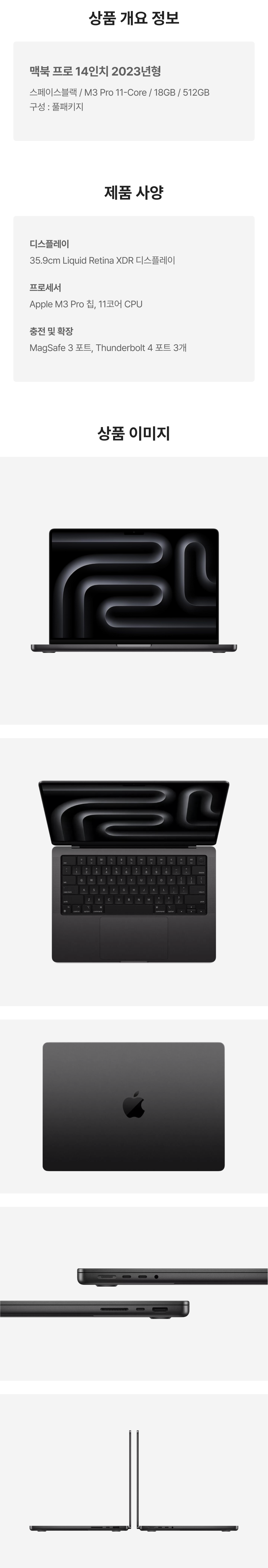 [S등급] 리퍼비시 2023 맥북 프로 14 M3 Pro 11c 512기가 SSD 18기가 램 스페이스블랙