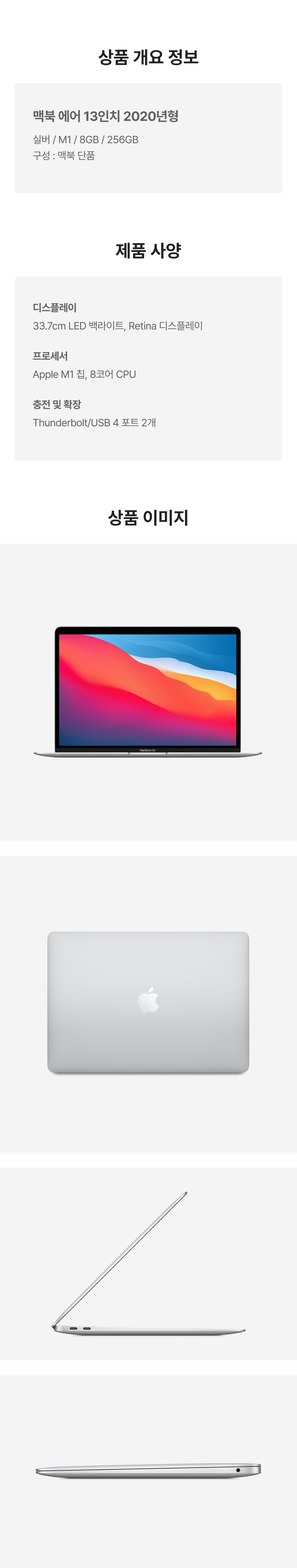 [A등급] 리퍼비시 2020 맥북 에어 13 M1 256기가 SSD 8기가 램 실버