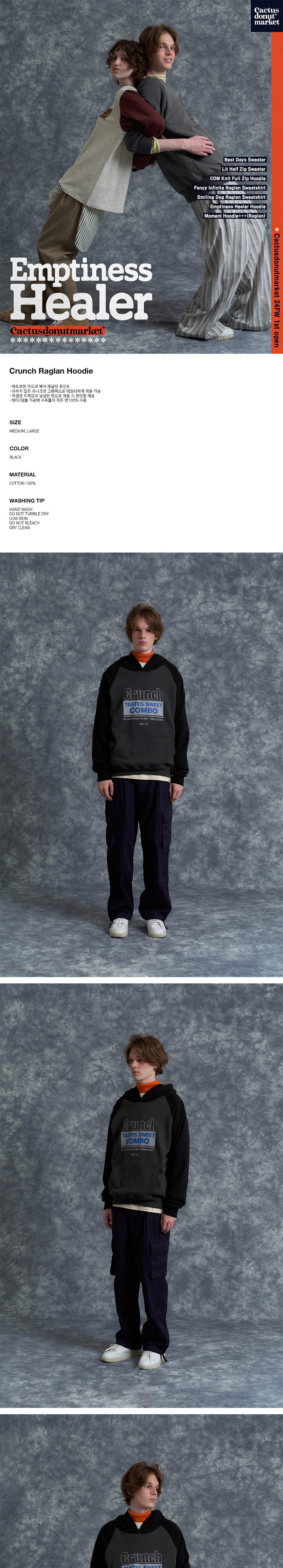 캑터스도넛마켓 크런치 레글런 후디 블랙