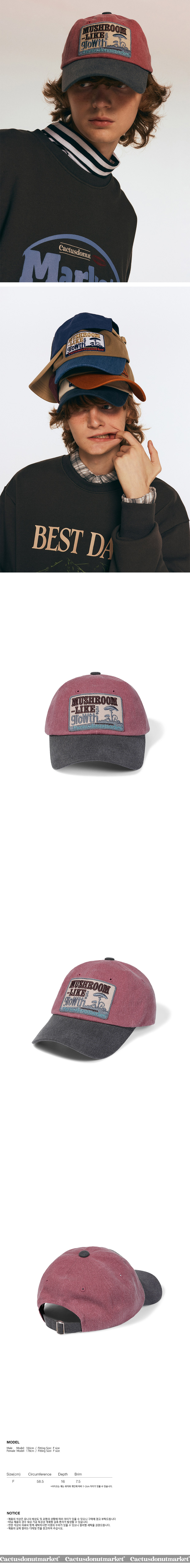 캑터스도넛마켓 머쉬룸 패치 투톤 볼캡 다크 핑크/차콜