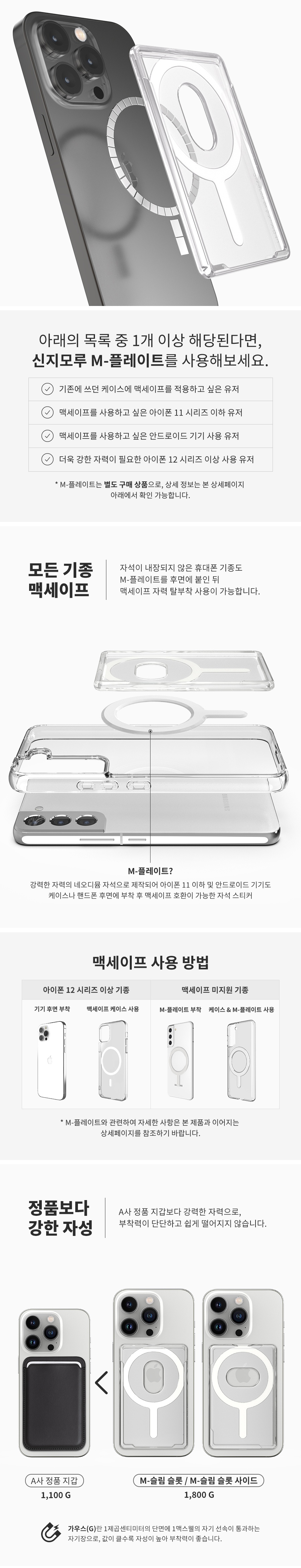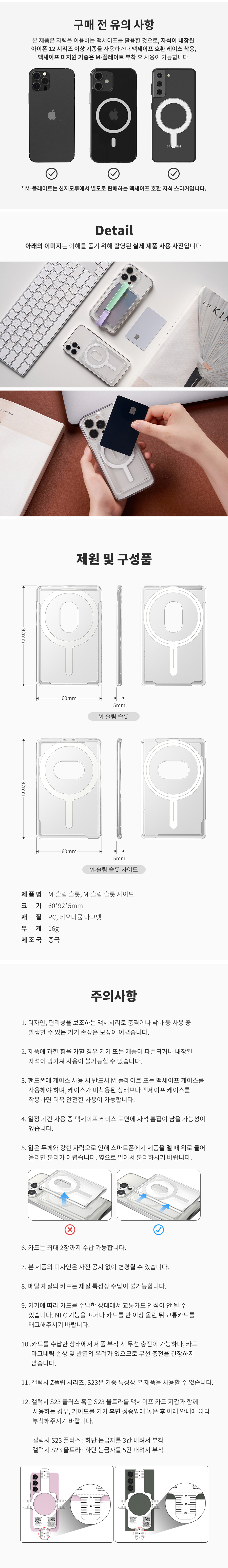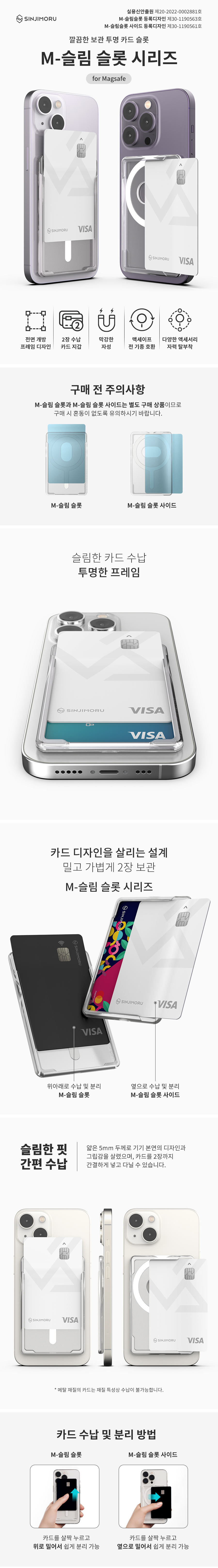 신지모루 맥세이프 슬림 슬롯 사이드 카드 홀더 아이폰 투명 카드지갑 케이스