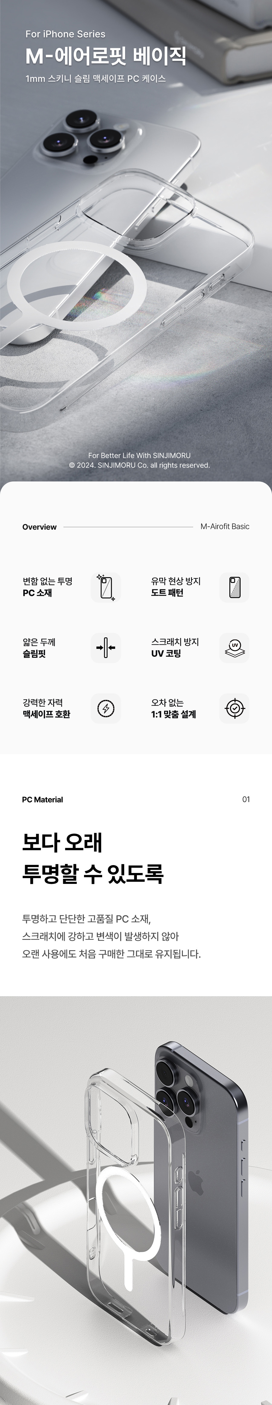 신지모루 맥세이프 M 에어로핏 베이직 투명 슬림 케이스 아이폰 17 16 15 14 13 12 미니 플러스 프로 맥스