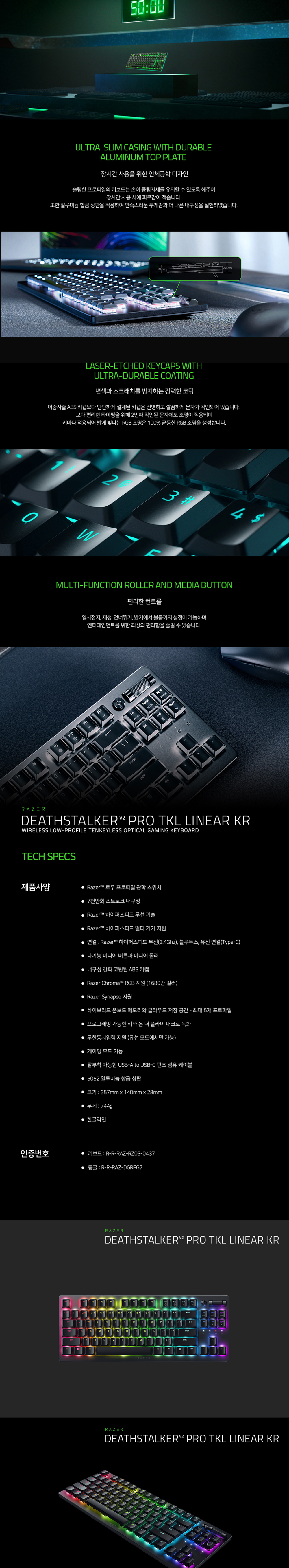 레이저 데스스토커 V2 프로 텐키리스 리니어 레드 한글