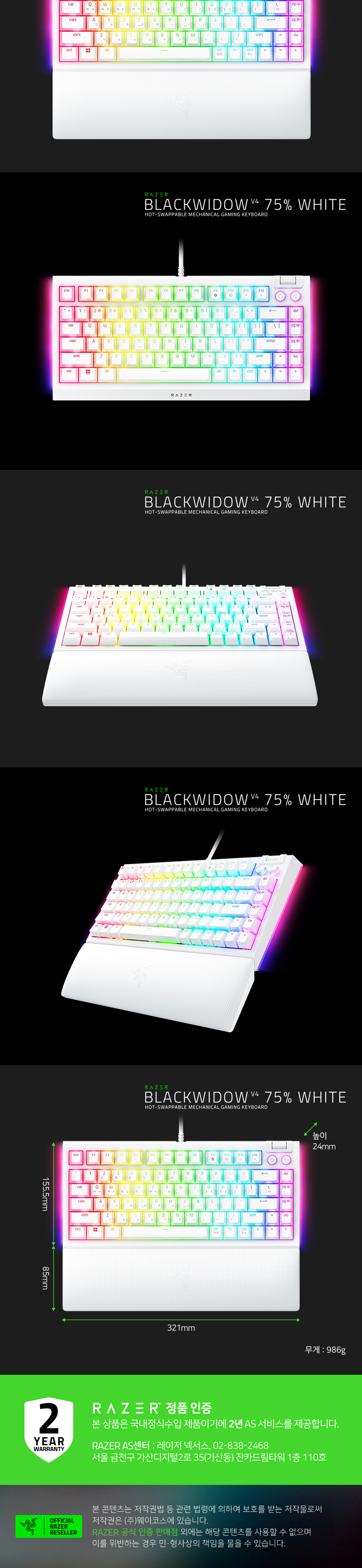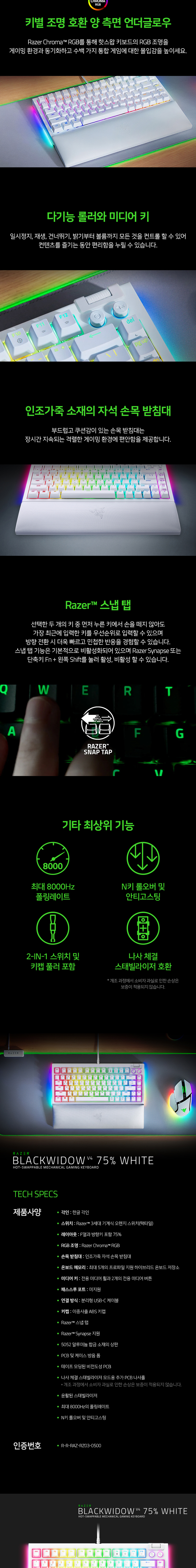 레이저 블랙위도우 V4 75% 화이트 한글