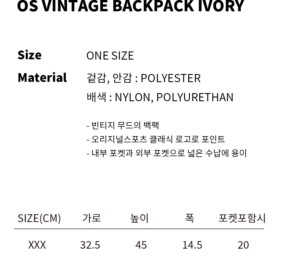 프로-스펙스 빈티지 백팩 아이보리