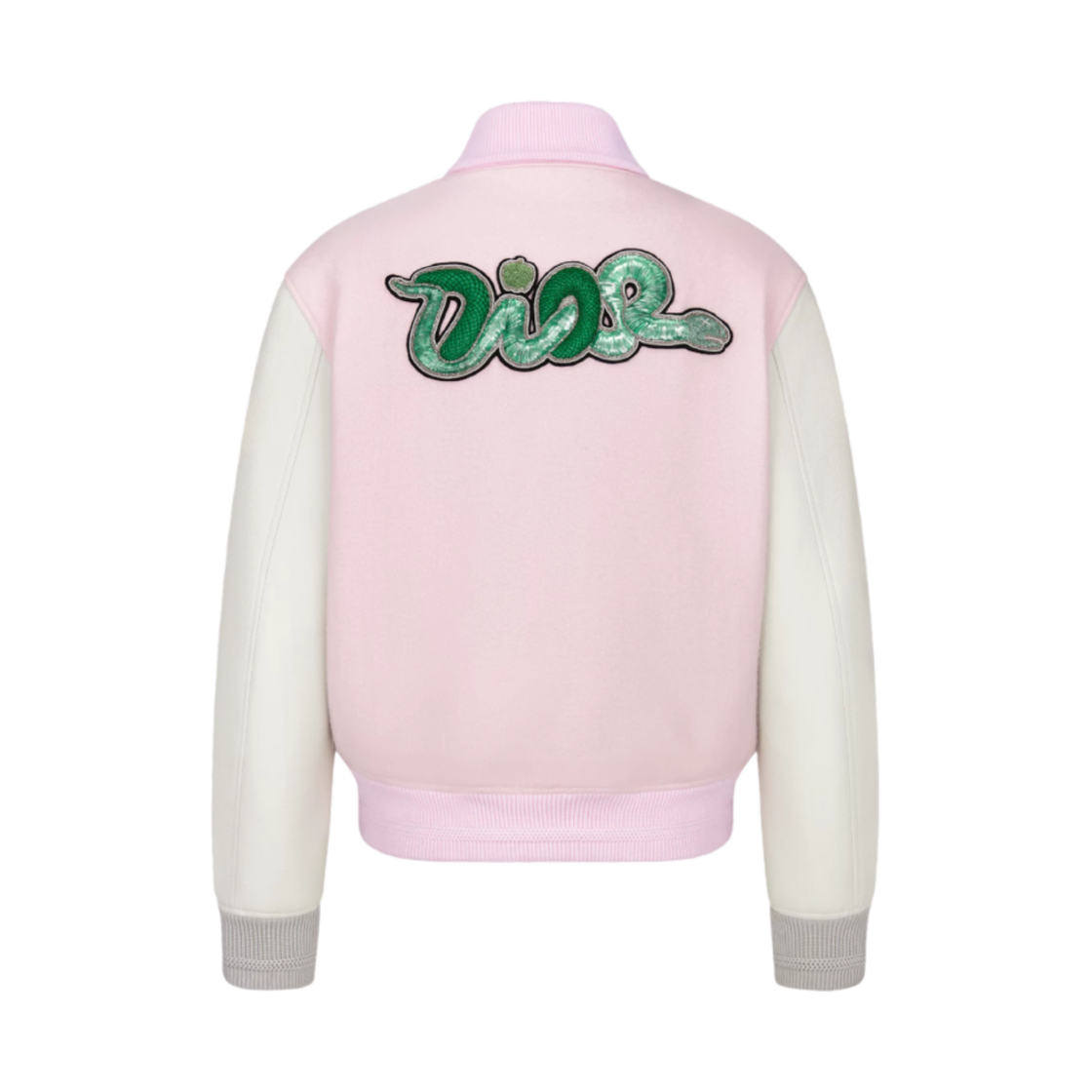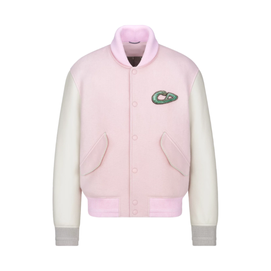 Dior x Kaws Virgin Wool and Cashmere with Cowhide Leather Varsity Jacket Pink Beige