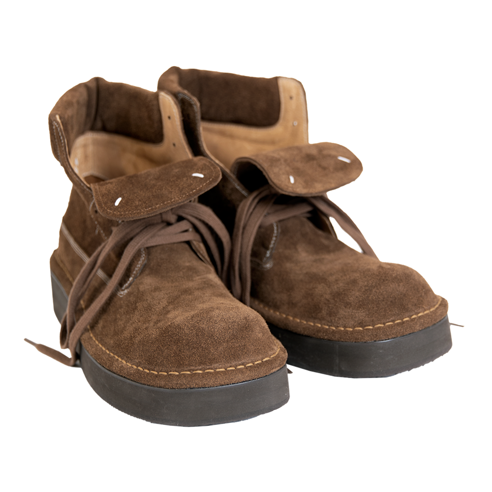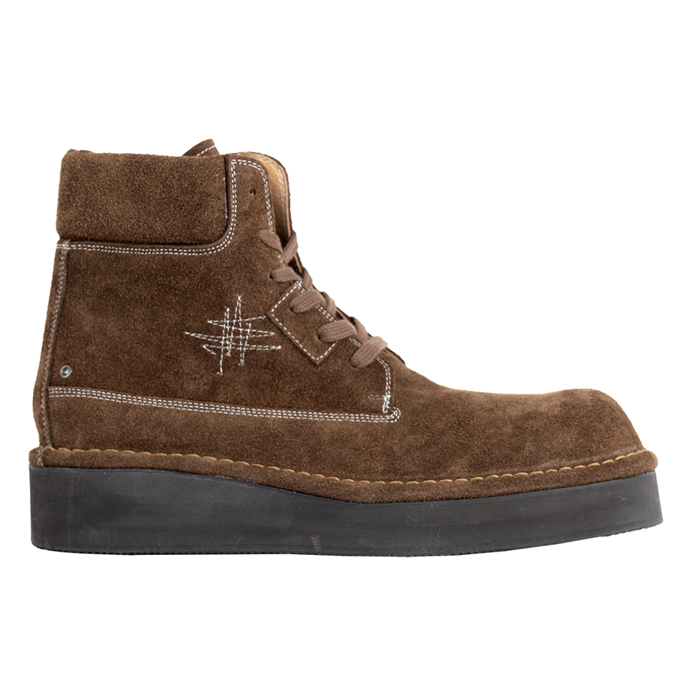 [갓필드_브라운] 해진 전투화를 연상시키는 요소들을 함축적으로 녹여내어 좀 더 차분한 빈티지 무드로 즐길 수 있도록 흥미로운 디테일로 조합된 부츠입니다. *소재 - Body : cow suede - Bottom : EVA *사이즈 - wide-02 fit - 와이드 팬츠에 어울리는 빅 볼륨 (굽높이 4.5cm) - 사이즈 추천▼ (확인 필수!!!) 평소 신으시는 신발의 가장 작은 사이즈 대비 발볼/발등 넓고 높으시면 -5사이즈 발볼/발등 좁고 낮으시면 -10사이즈 다운 (다운사이징하셔도 보통 작지 않습니다) *주문 제작 상품으로, 제작 기간은 결제 후 영업일 기준 약 12일 소요됩니다. *제품상자는 자사의 제품임으로 훼손시 환불이 불가합니다.